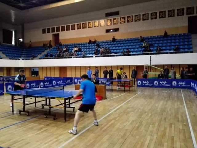 到了球馆我们才听到一个爆炸性消息:淘汰赛阶段,其他外国队伍已经全部被淘汰,这说明朝鲜的乒乓球实力果然名不虚传,非常强悍。据说乒乓球是朝鲜国球。