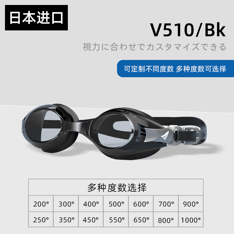 view泳镜日本进口高清防雾防水休闲泳镜男士女士近视游泳装备V510黑色