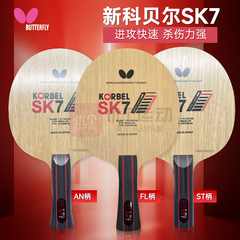 Butterfly蝴蝶新科贝尔SK7(KORBEL)乒乓球底板 七层纯木经典 横拍FL柄35811 横拍AN柄35812 横拍ST柄35814经典全面型!三种柄型可选!快攻弧圈利器