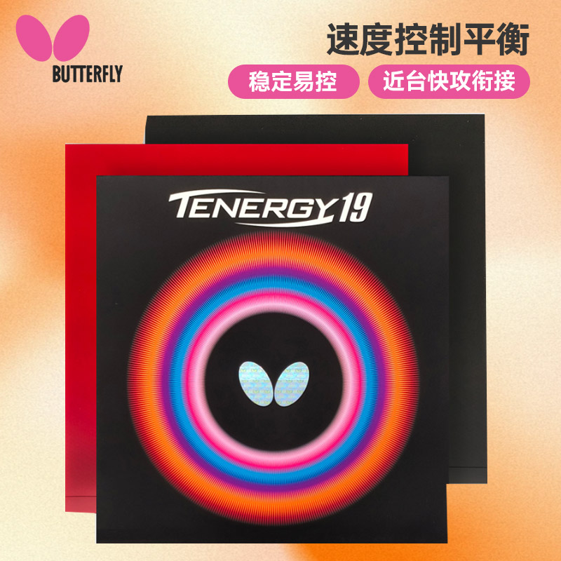 蝴蝶T19内能反胶套胶06090(Butterfly TENERGY.19) 弧线更高威力更大兼顾高弹裹球感的海绵及细腻触感胶面 更高硬度、支撑、速度