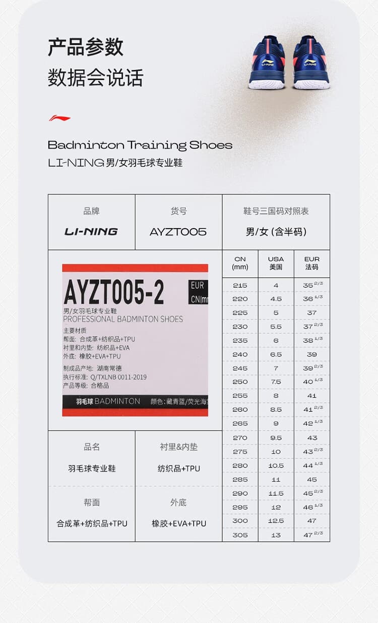 李宁LI-NING羽毛球鞋 男女款 刀锋LITE 比赛训练运动鞋 全面均衡型刀锋LITE AYZT005-2 藏青蓝/荧光红 本品参加12.12返场特惠满129减20 299减50 499减80 999减150元大促!