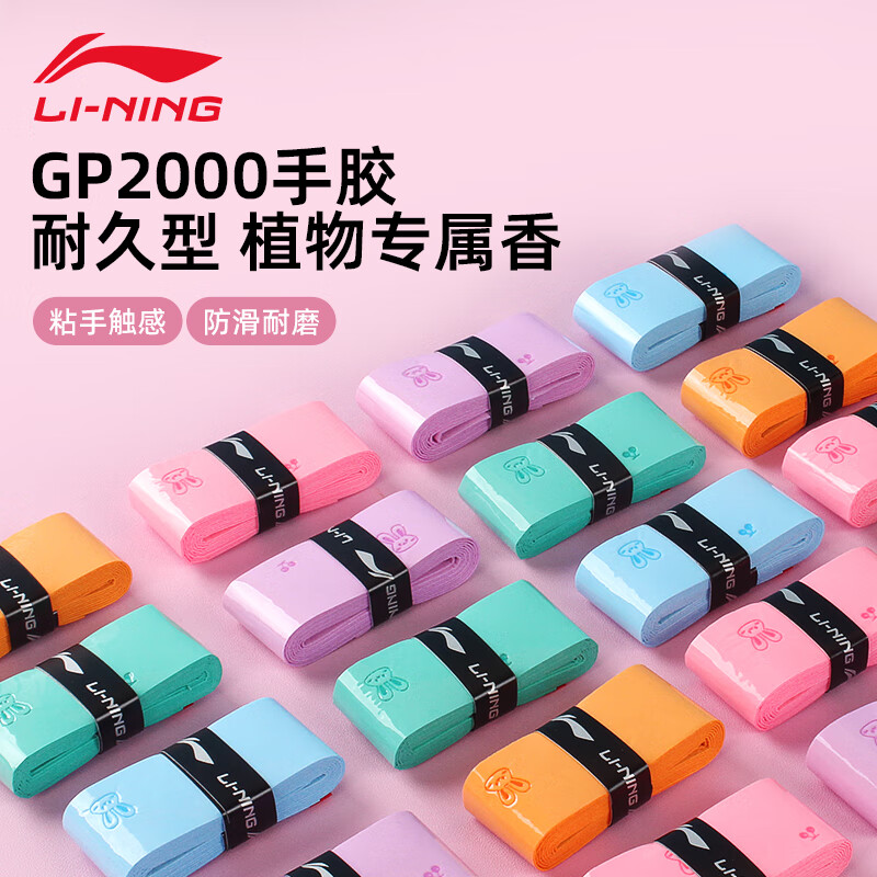LI-NING 李宁 羽毛球手胶 粘性耐磨胶皮 吸汗带手柄绑带 植物香型 兔子印花 ASJV005 GP2000 单条装 吸汗防滑 耐磨耐用