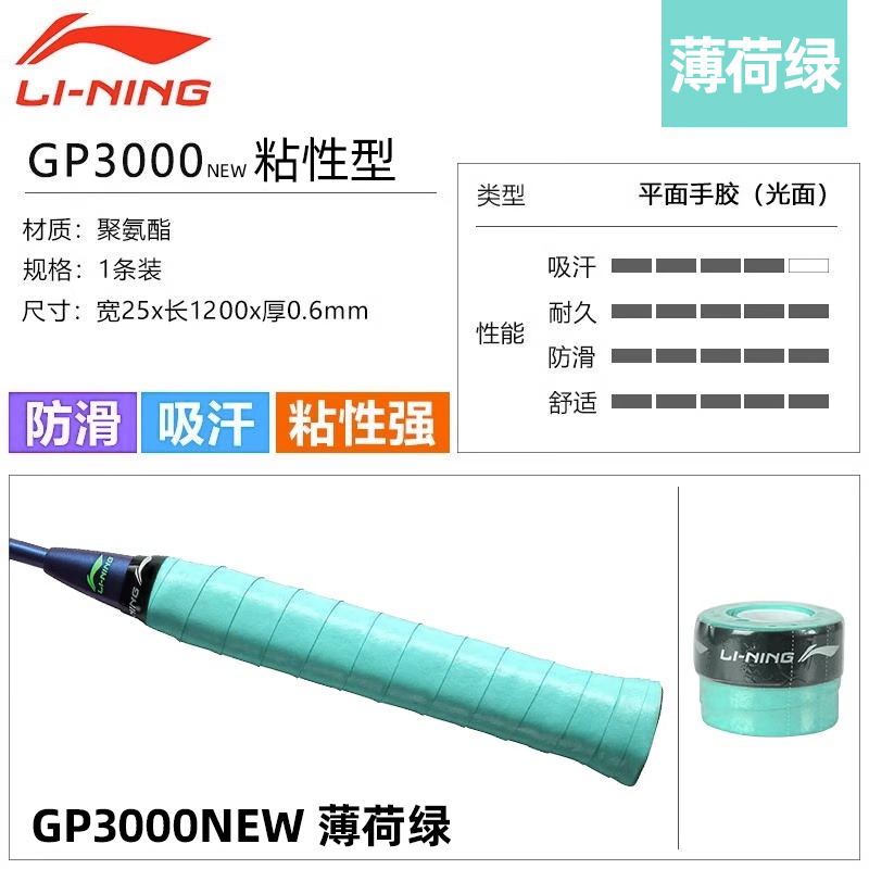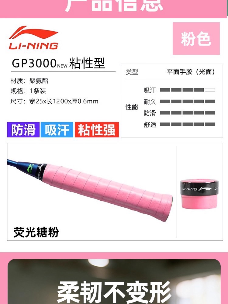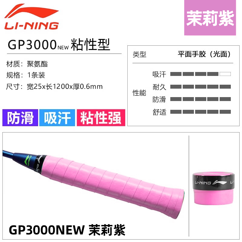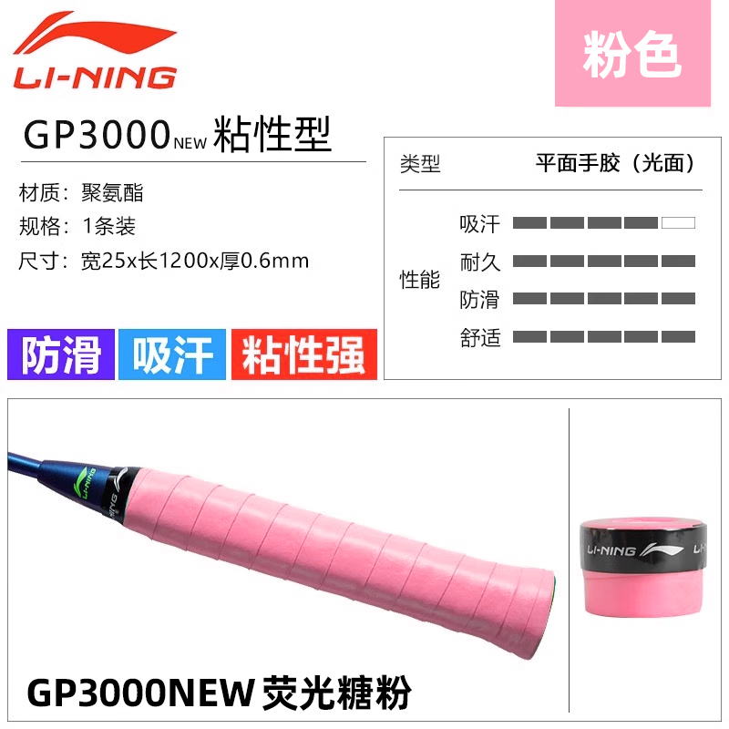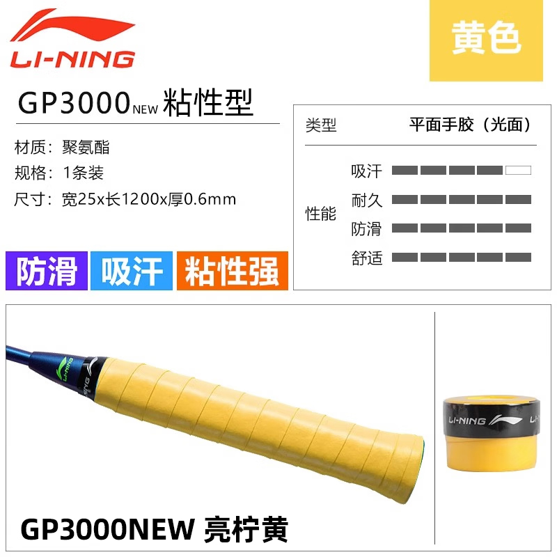 LI-NING李宁 羽毛球拍手胶 吸汗带 ASJU013 GP3000NEW 光面防滑吸汗舒适 粘性强 耐用 多色可选 单条装 粘性握感 多色可选