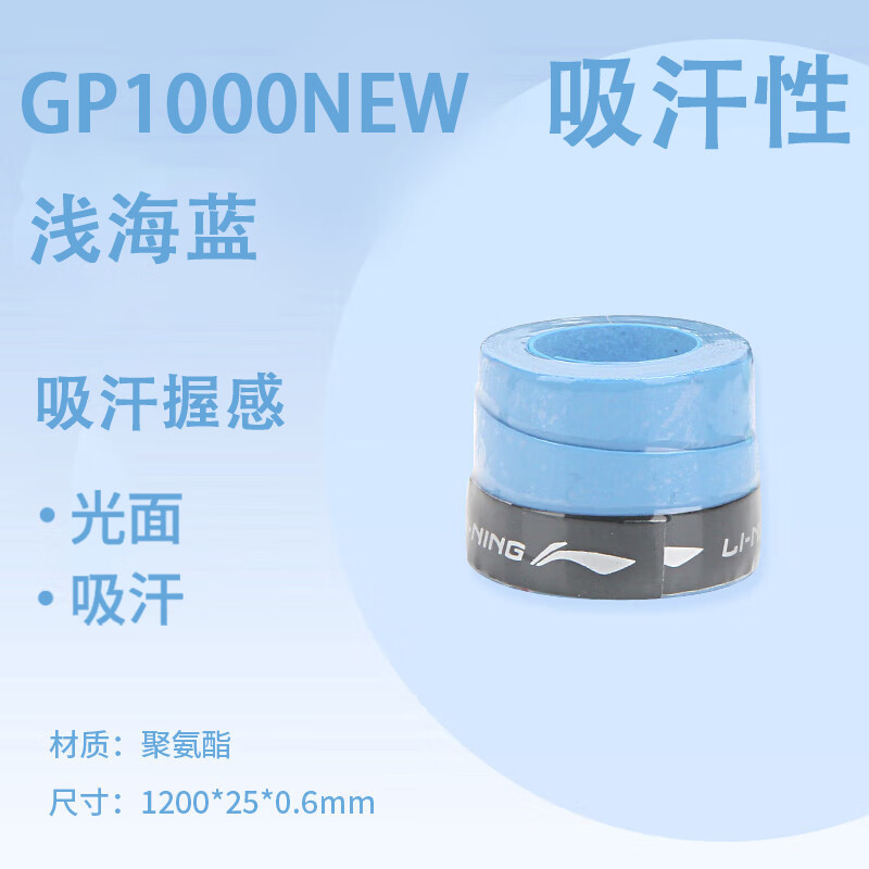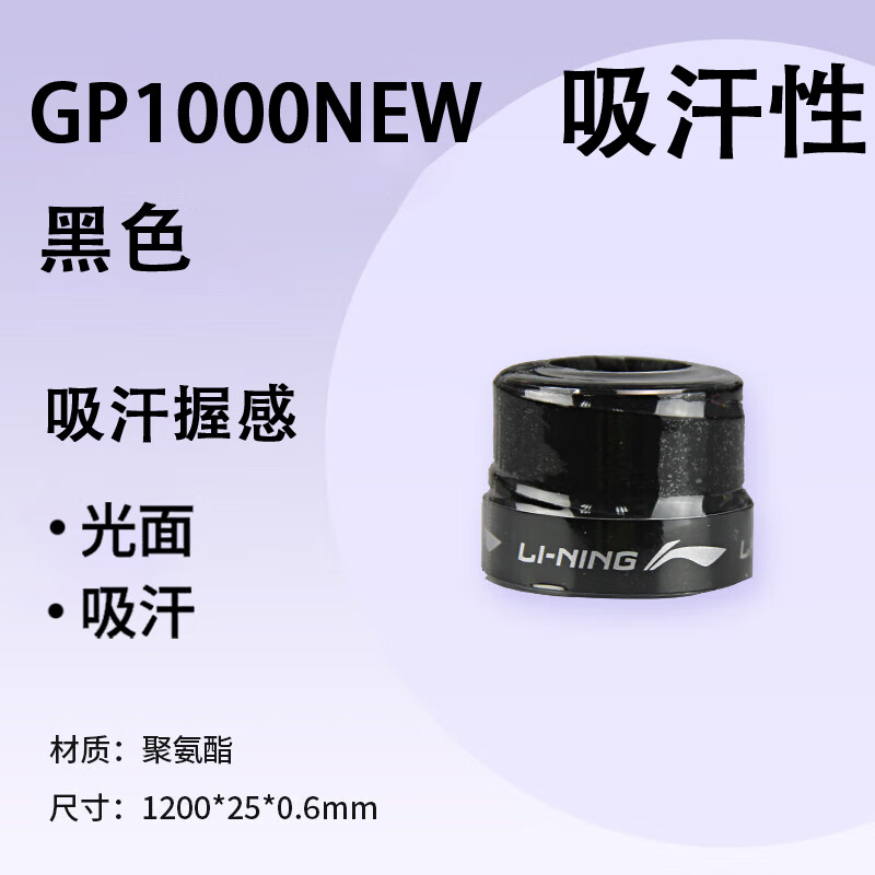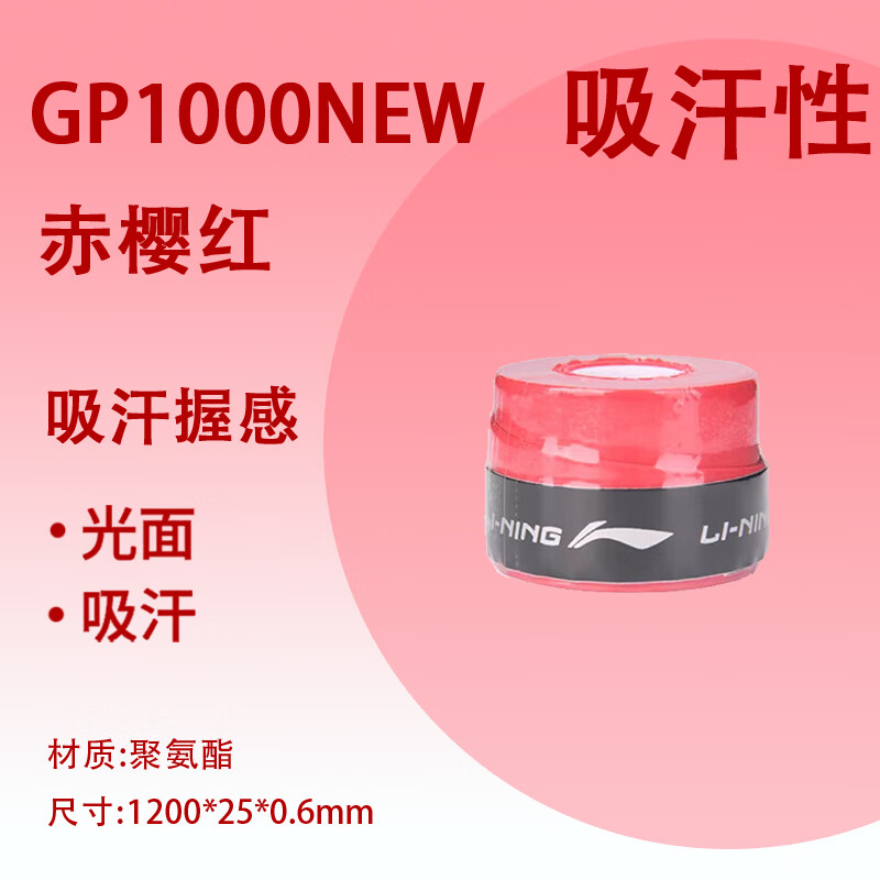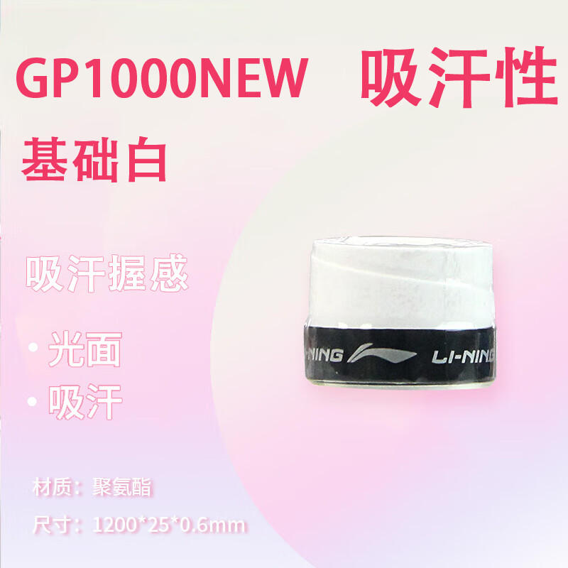 李宁 羽毛球手胶 GP1000 NEW 光面防滑 缓震吸汗带 拍柄胶 ASJU005 多色可选 单条装 防滑吸汗,舒适减震,耐磨耐用