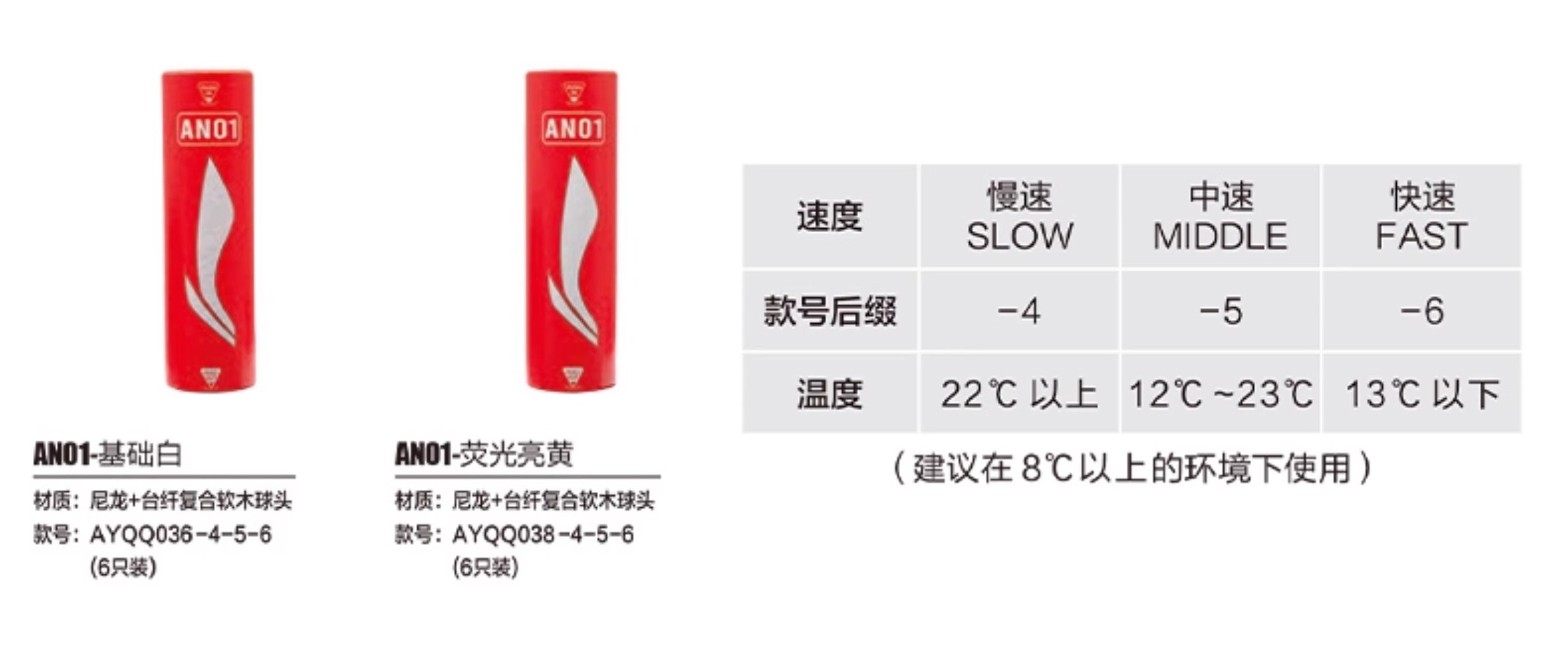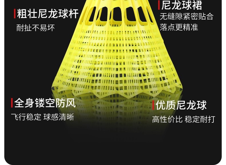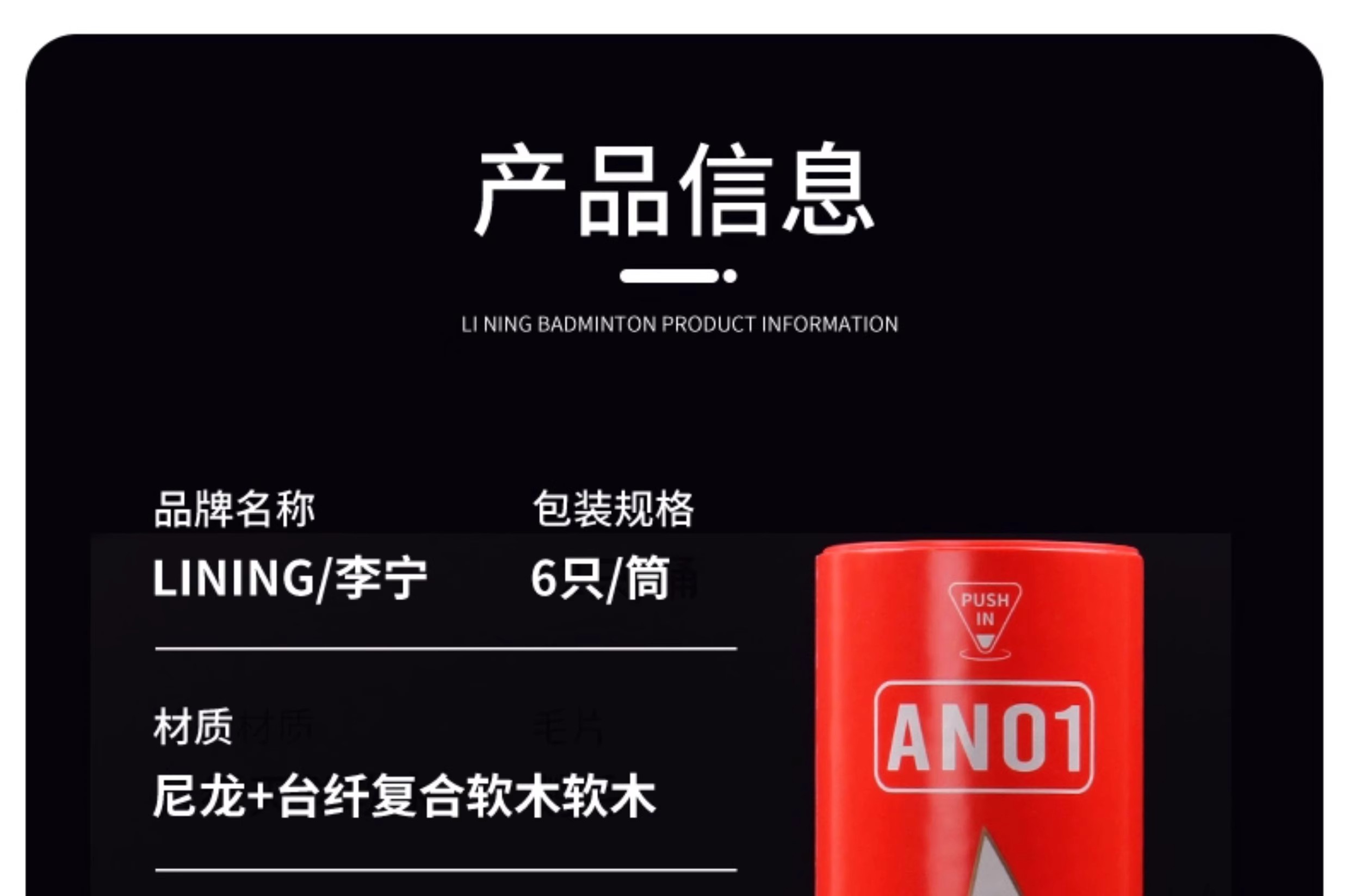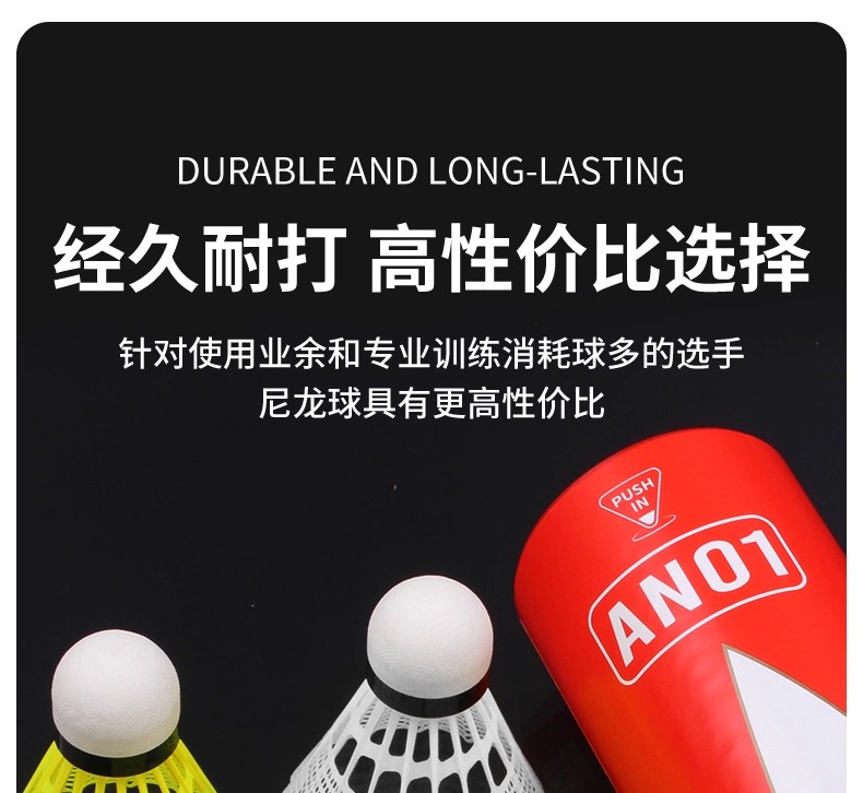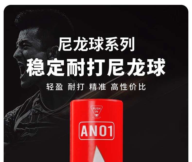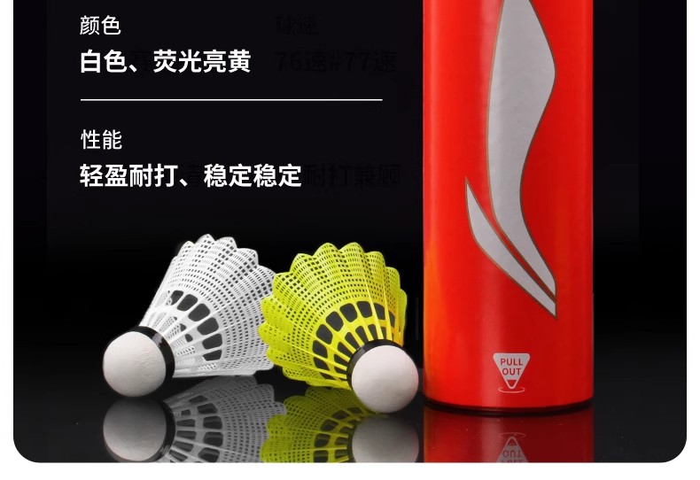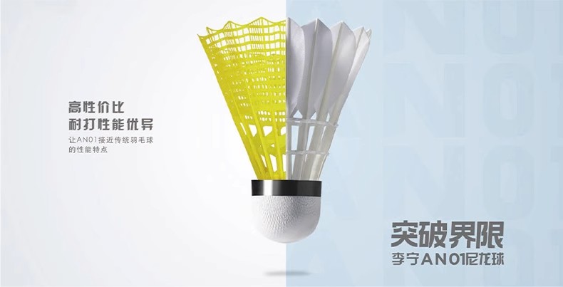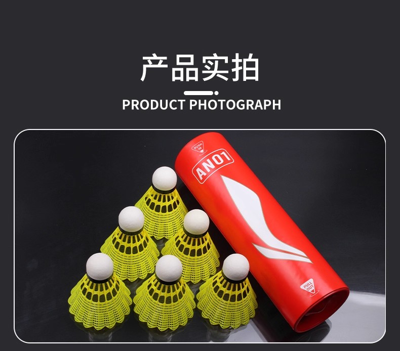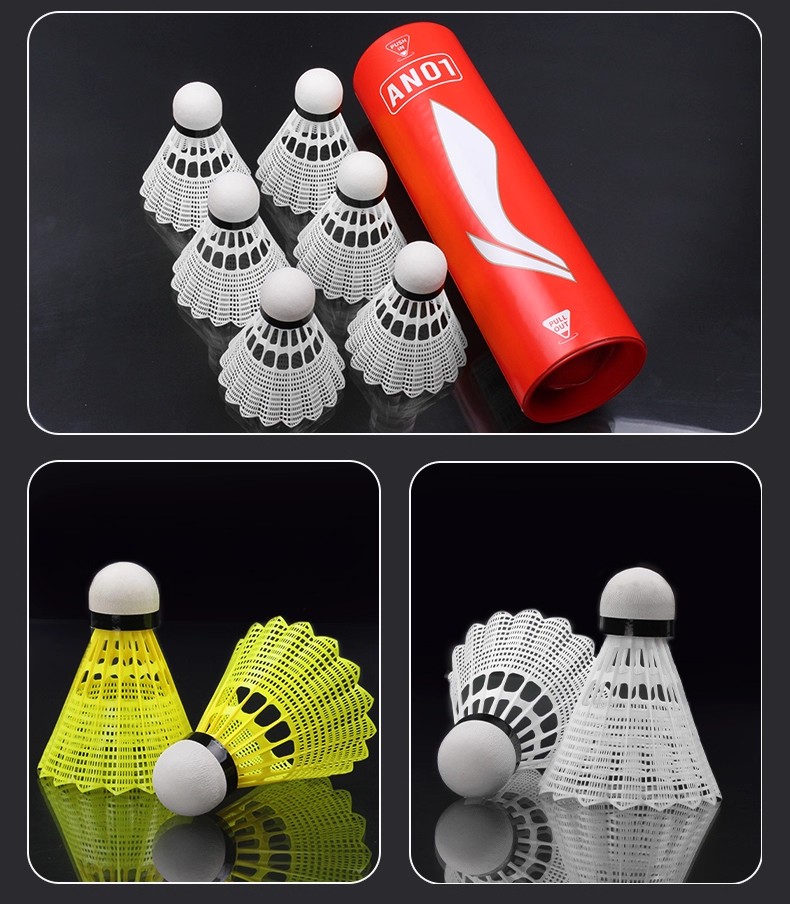 LI-NING 李宁 羽毛球 尼龙球 塑料球 AN01 耐打稳定 防风训练球 室内室外训练用 中速球 6只/筒 性价比高 耐打耐用 适合羽毛球爱好者训练用