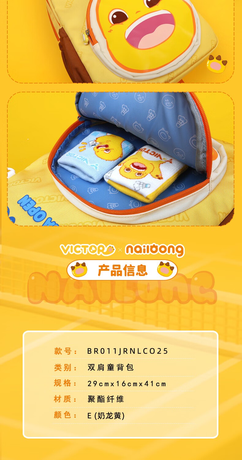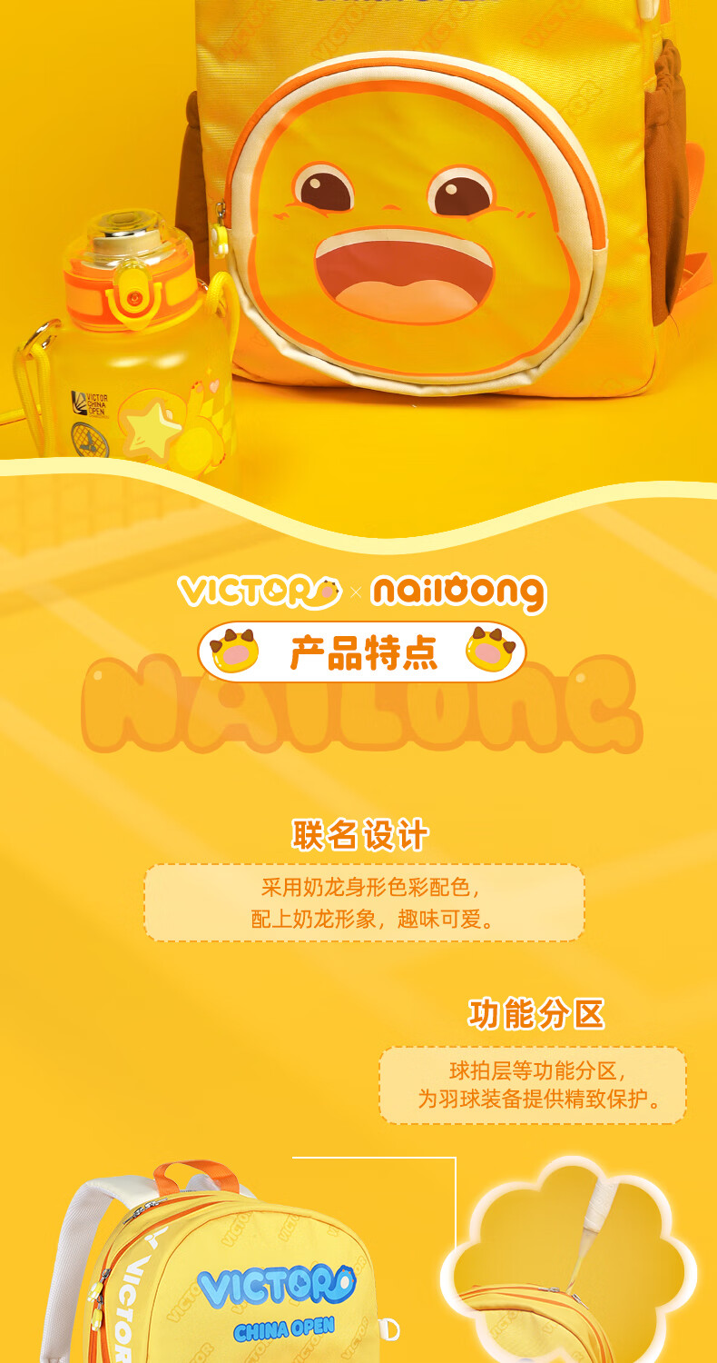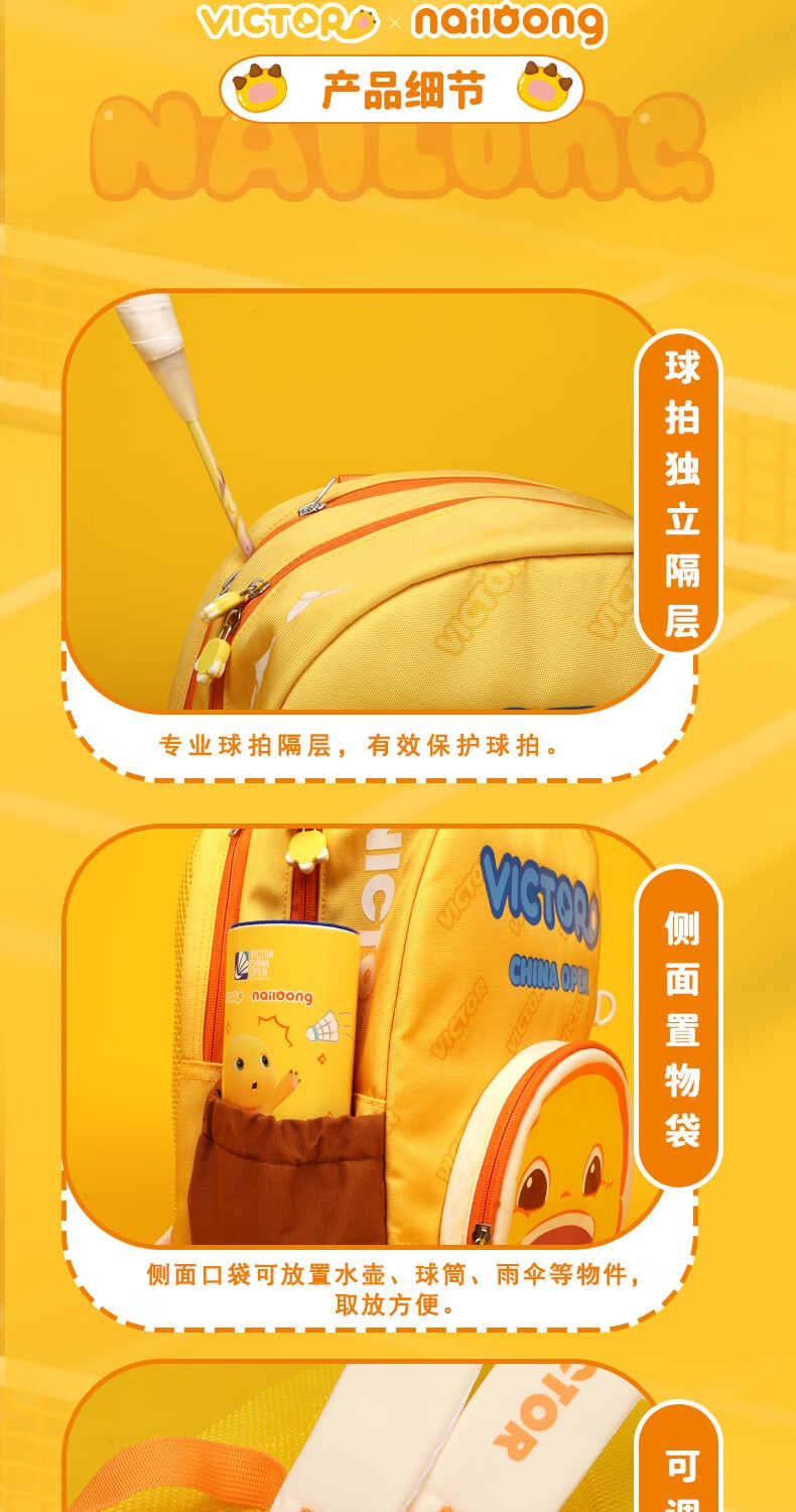 VICTOR 威克多 羽毛球包 中国公开赛 奶龙联名款 大容量便携 双肩背包 BR011JRNLCO25 E奶龙黄 趣味奶龙元素 球拍层等功能分区