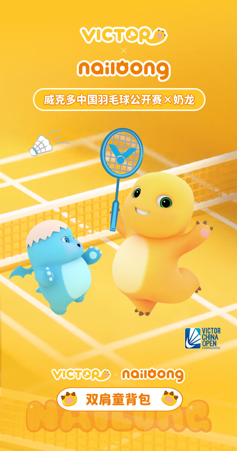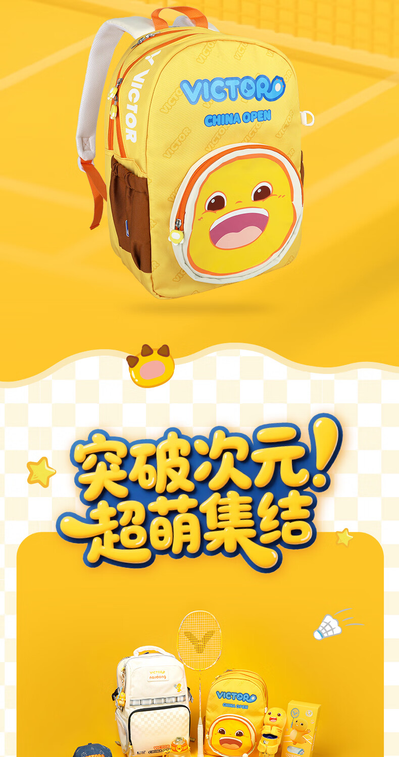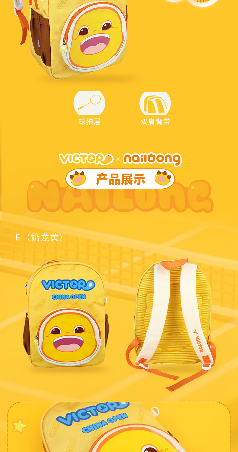 VICTOR 威克多 羽毛球包 中国公开赛 奶龙联名款 大容量便携 双肩背包 BR011JRNLCO25 E奶龙黄 趣味奶龙元素 球拍层等功能分区