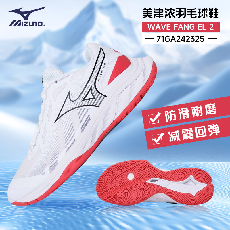 MIZUNO 美津浓 羽毛球鞋 WAVE FANG EL2 专业级训练鞋 男女款 71GA242325 白黑红 缓震 透气 耐磨