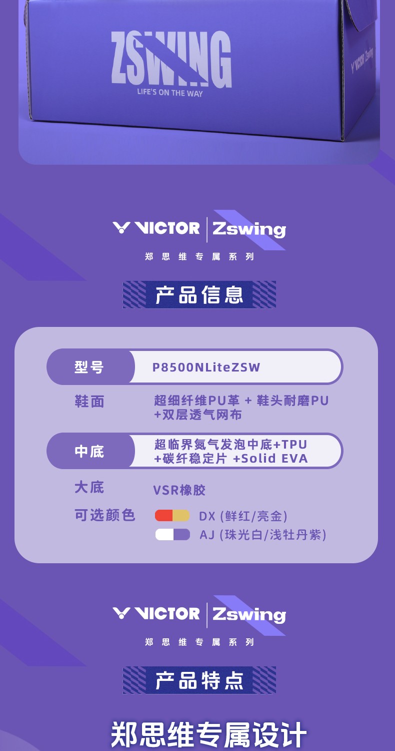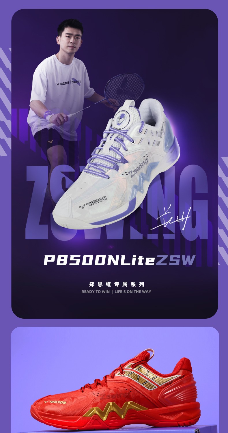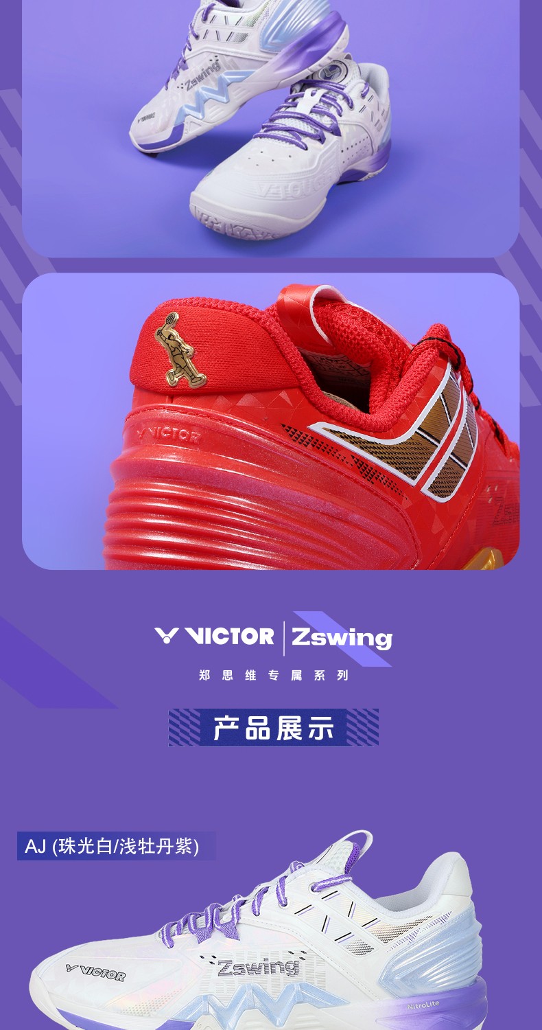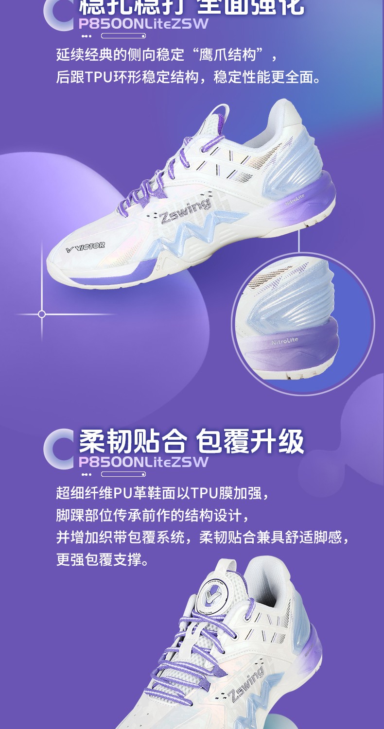 VICTOR威克多胜利羽毛球鞋 防滑耐磨稳定 郑思维系列 稳定类球鞋 P8500NLZSW AJ 珠光白/浅牡丹紫 超临界中底 澎湃动力,稳扎稳打 全面强化