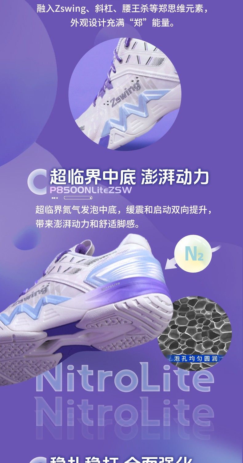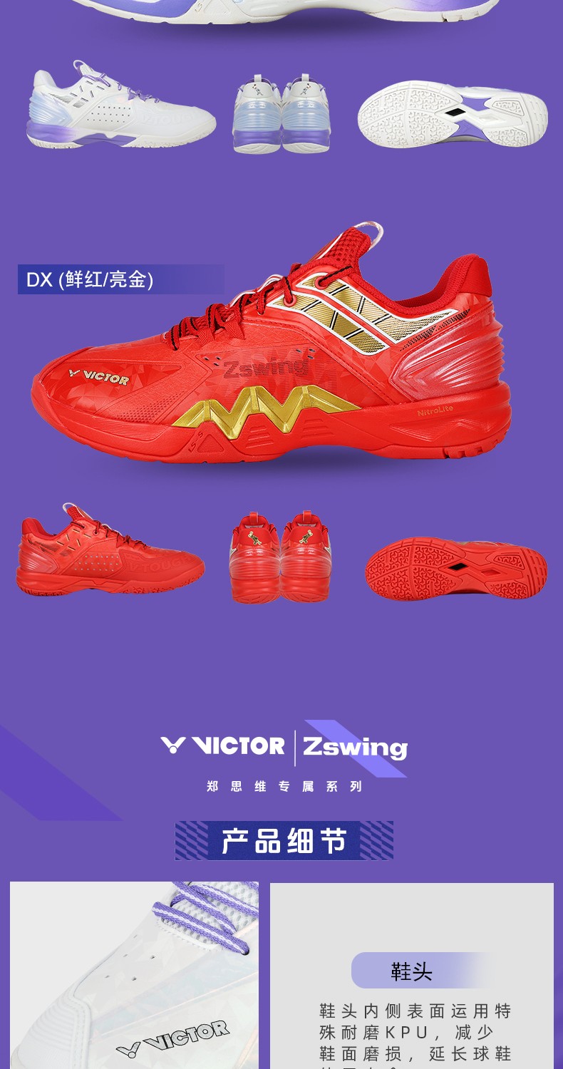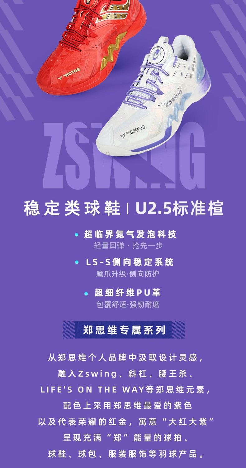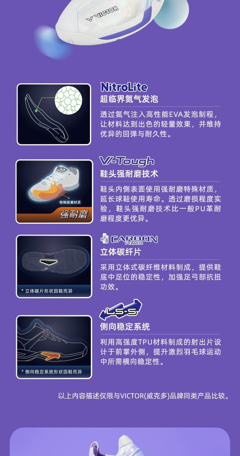 VICTOR威克多胜利羽毛球鞋 防滑耐磨稳定 郑思维系列 稳定类球鞋 P8500NLZSW AJ 珠光白/浅牡丹紫 超临界中底 澎湃动力,稳扎稳打 全面强化