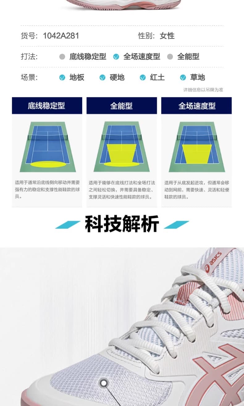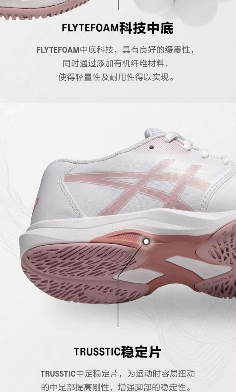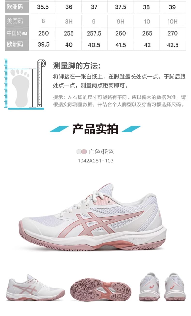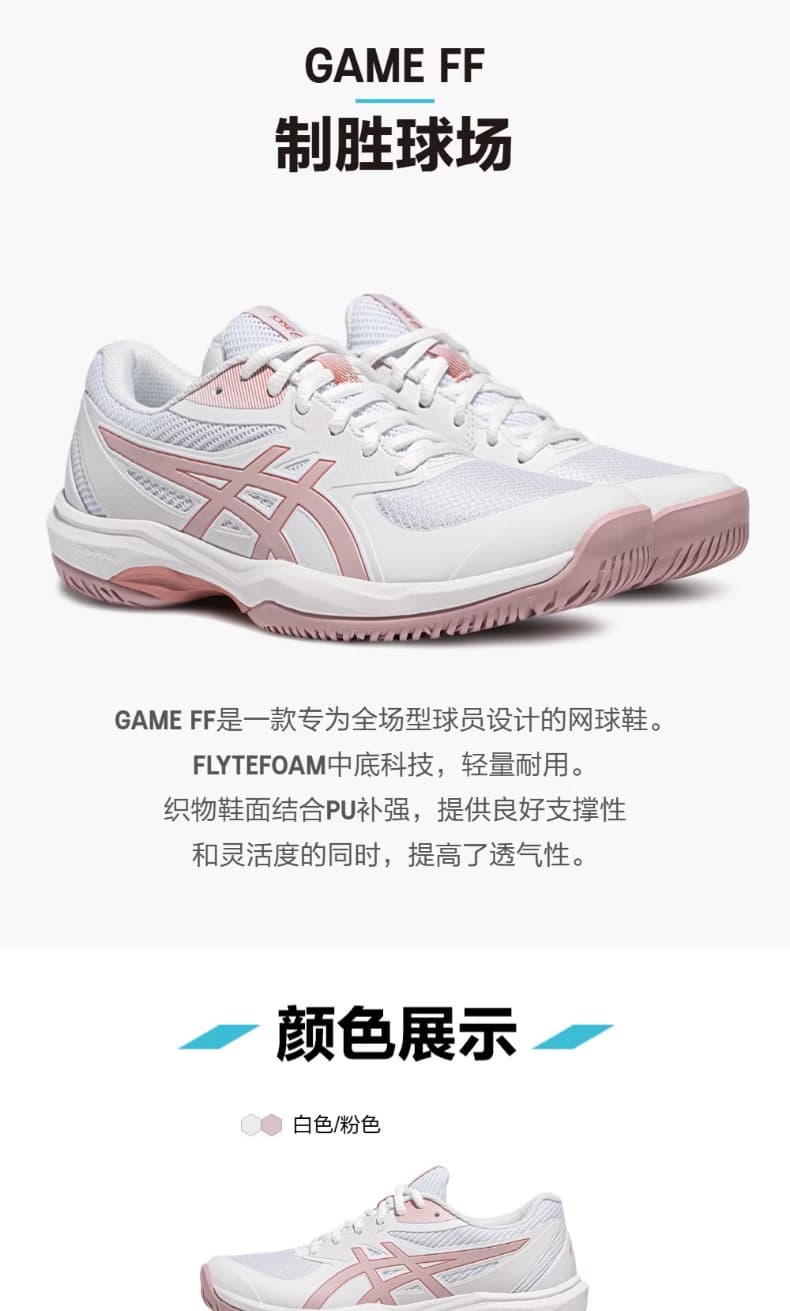 ASICS亚瑟士网球鞋 GAME FF女运动鞋训练鞋轻质透气耐磨 1042A281-103 白粉