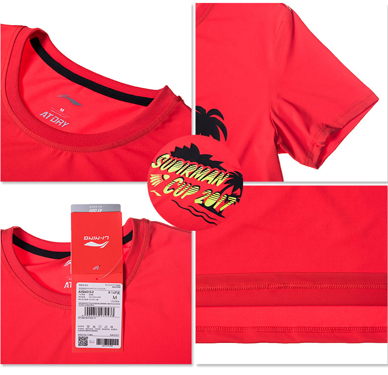 李宁羽毛球服 苏迪曼杯纪念服 AHSM515-2 男款 中国红 细节: