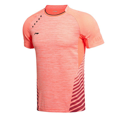 李宁AAYK219-3男款橙色羽毛球比赛上衣 ( 国羽世锦赛战袍,炫亮出击)冠军谌龙展示