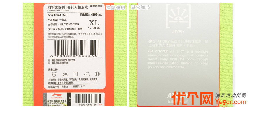 李宁AWDK416-1黑色女款开衫无帽卫衣(国家队赞助款)吊卡:
