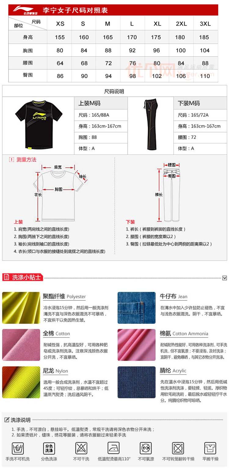 李宁AWDK416-1黑色女款开衫无帽卫衣(国家队赞助款)尺码对照表: