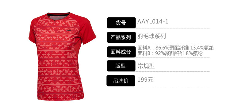 李宁AAYL014-1女款羽毛球服 国旗红(国家队全英赛大赛服TD版)吊卡: