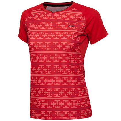 李宁AAYL014-1女款羽毛球服 国旗红(国家队全英赛大赛服TD版)正面: