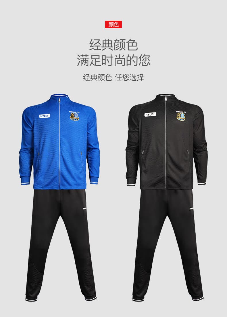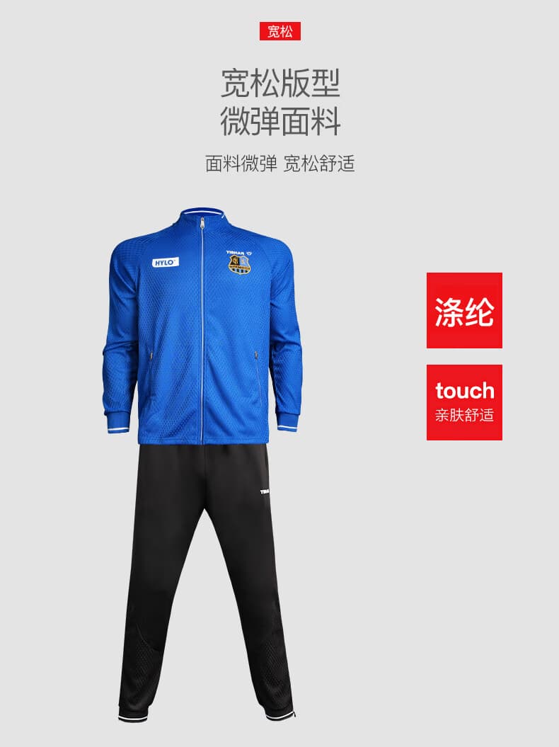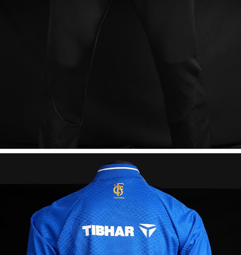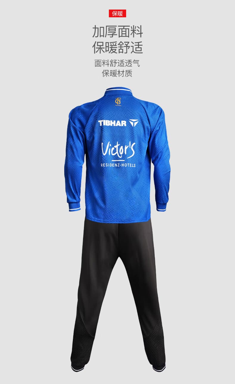 TIBHAR挺拔 运动套装 连冠版2.0 欧冠套服 长袖长裤乒乓球运动套装 蓝色上衣黑色长裤经典配 柔软舒适,经典配色动感十足