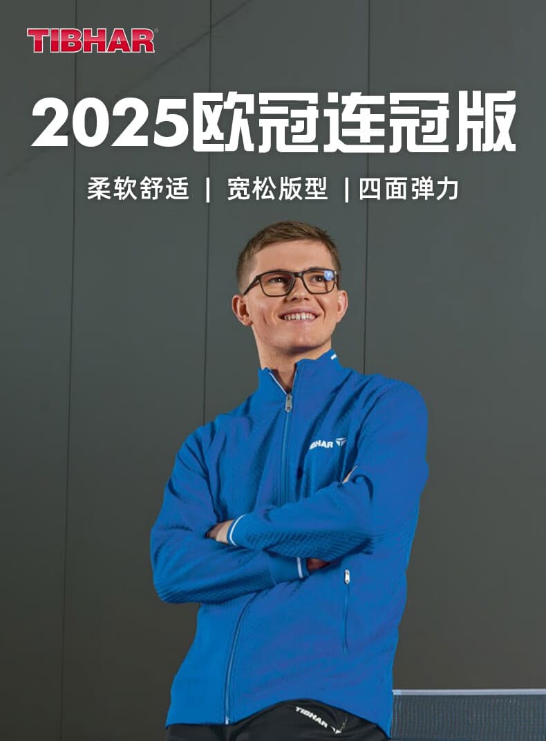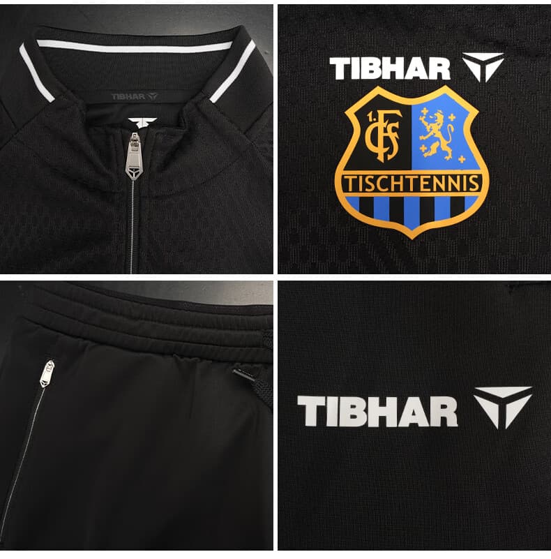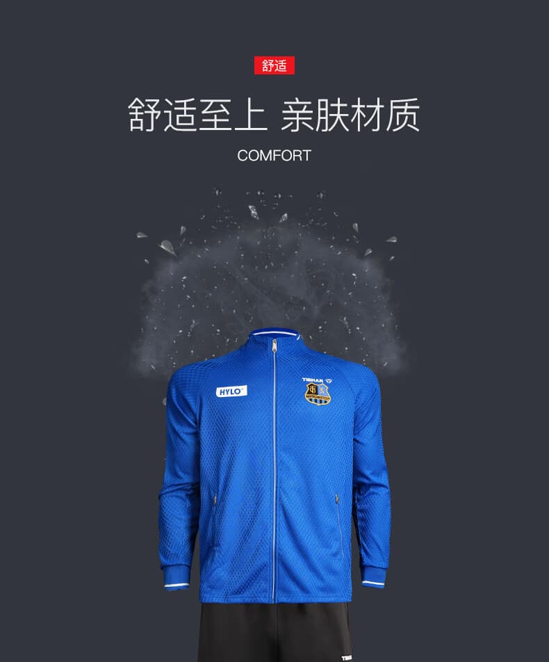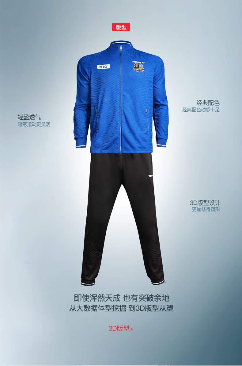 TIBHAR挺拔 运动套装 连冠版2.0 欧冠套服 长袖长裤乒乓球运动套装 蓝色上衣黑色长裤经典配 柔软舒适,经典配色动感十足