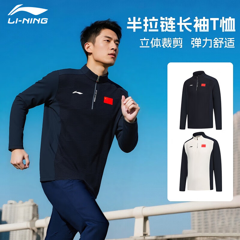 LINING李宁 长袖卫衣 透气运动长袖T恤 荣耀系列国旗外套 深幽蓝 ATLV187-1 25年秋季新款!