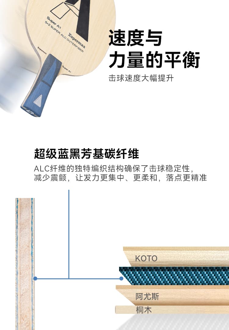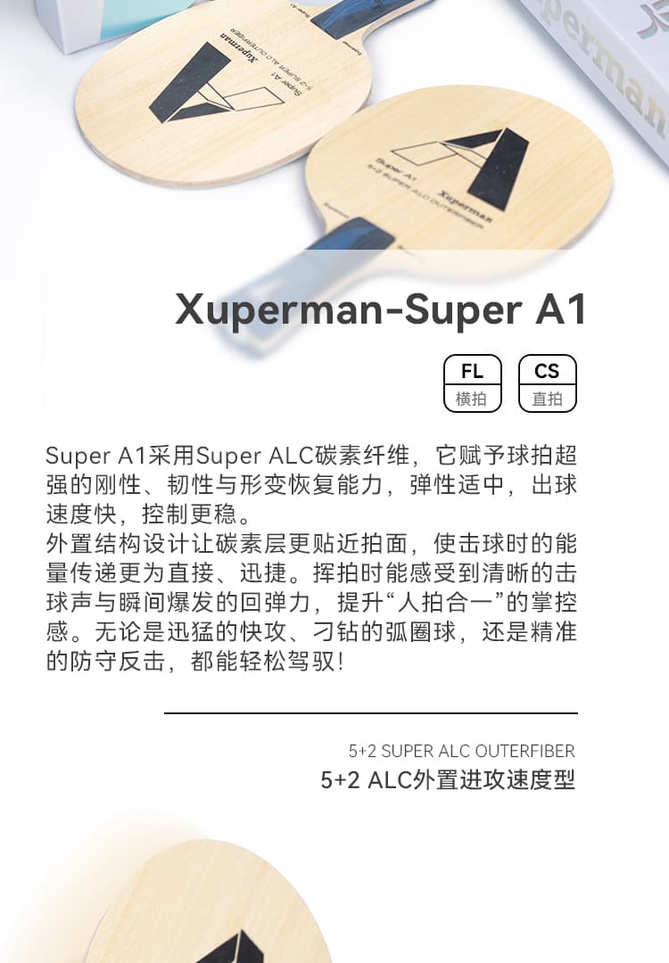 Xuperman 乒乓球底板 Super A1 外置ALC碳素底板 进攻型乒乓球拍