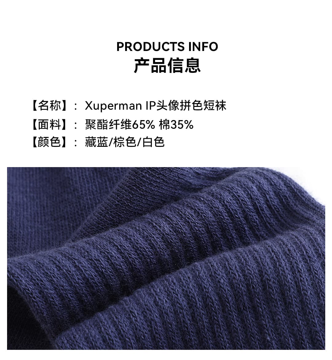 Xuperman 乒乓球袜 潮流男女可爱袜子 ip头像拼色运动休闲短袜 三色可选 潮流舒适