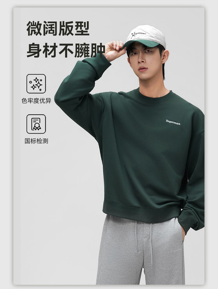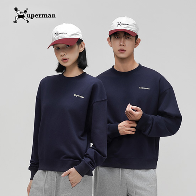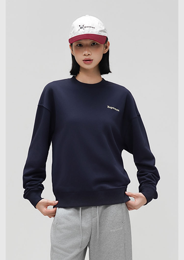Xuperman 乒乓球服 刺绣圆领卫衣男女同款宽松慵懒风套头上衣 基础百搭长袖T恤 藏蓝