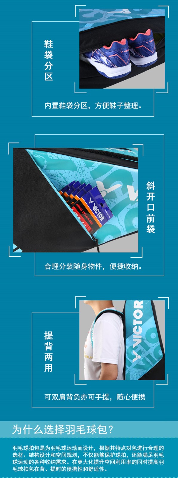 VICTOR胜利威克多羽毛球包 BR6215FC 6支装双肩背拍包网羽两用 6支装,独立鞋仓