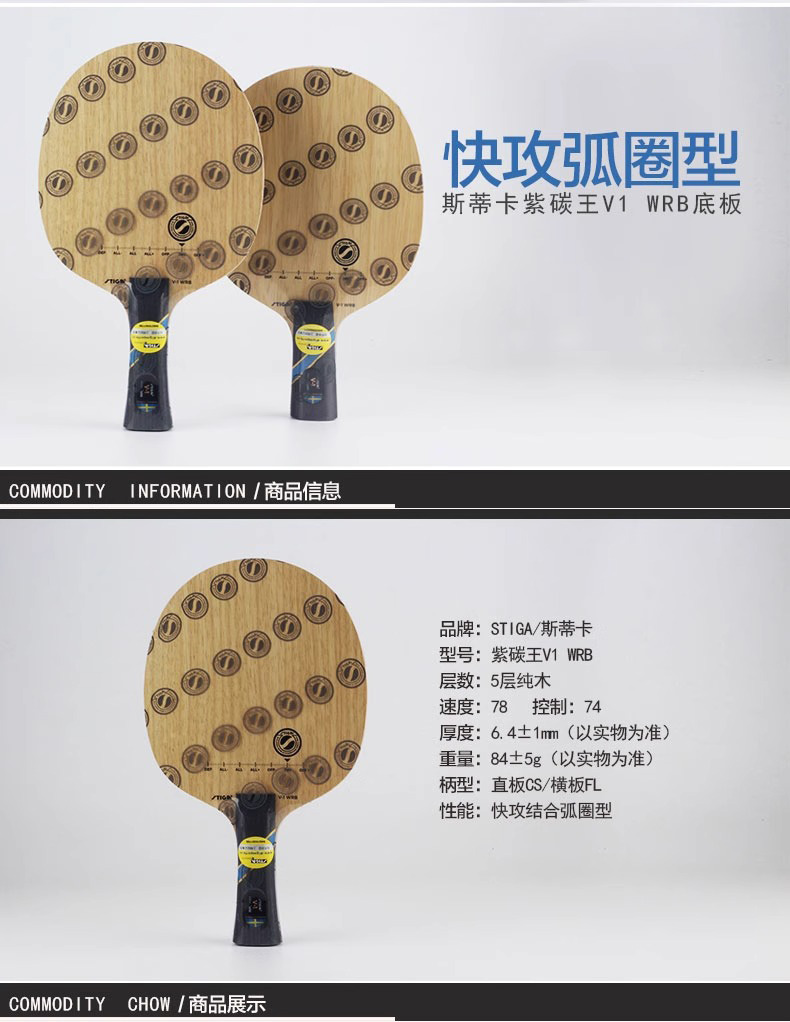 斯帝卡Stiga V-1-WRB紫碳王 快攻型乒乓底板