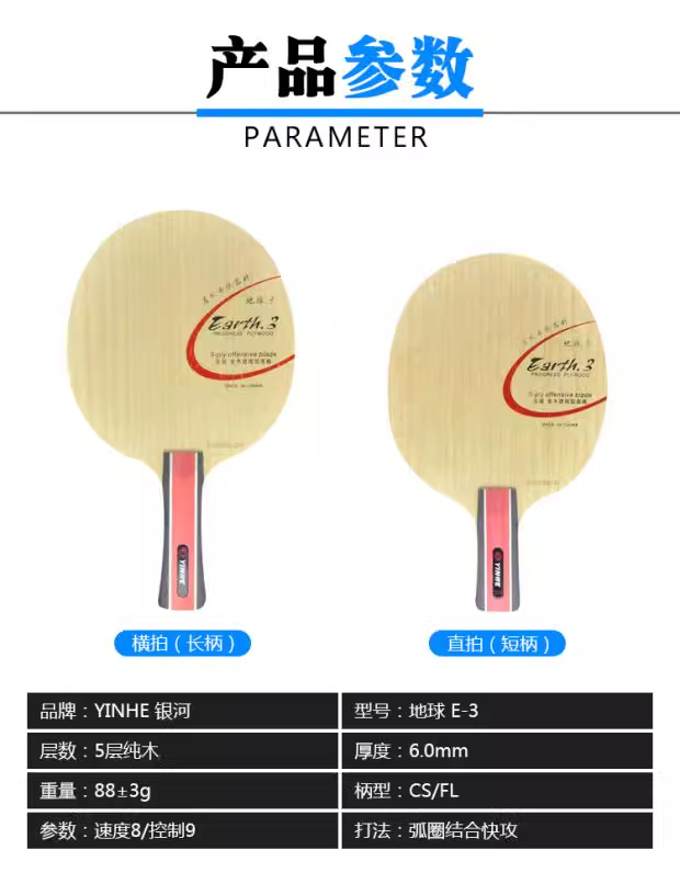 银河YINHE 地球3 E-3专业纯木乒乓底板
