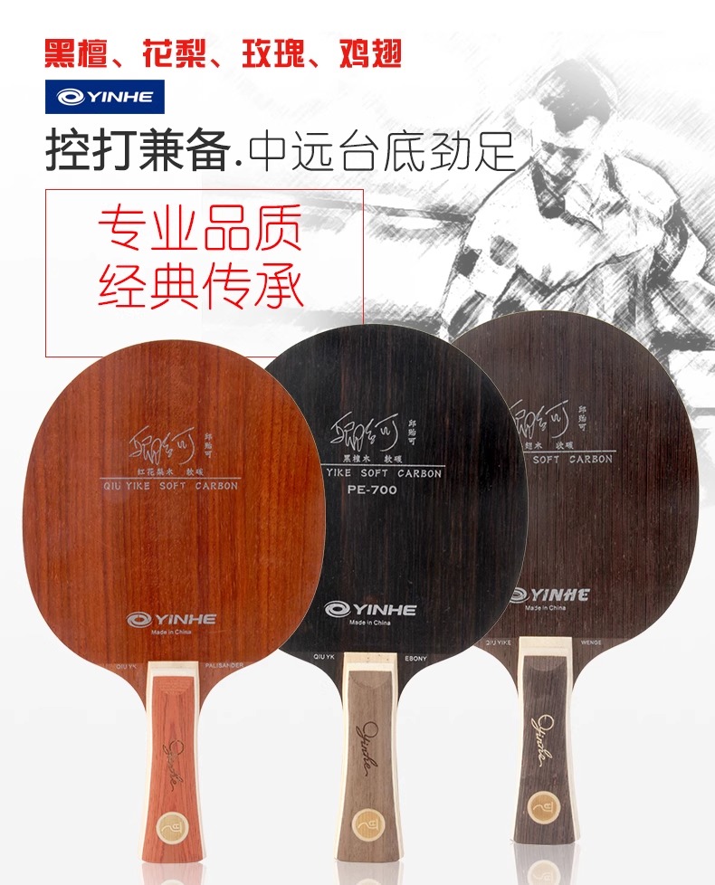 以银河签约国手“邱贻可”名字命名的平价红木系列底板。由‘邱贻可"试用满意后推出的底板,共5种,其中限量版一种;花梨木、黑檀木、玫瑰木、鸡翅木各一种。