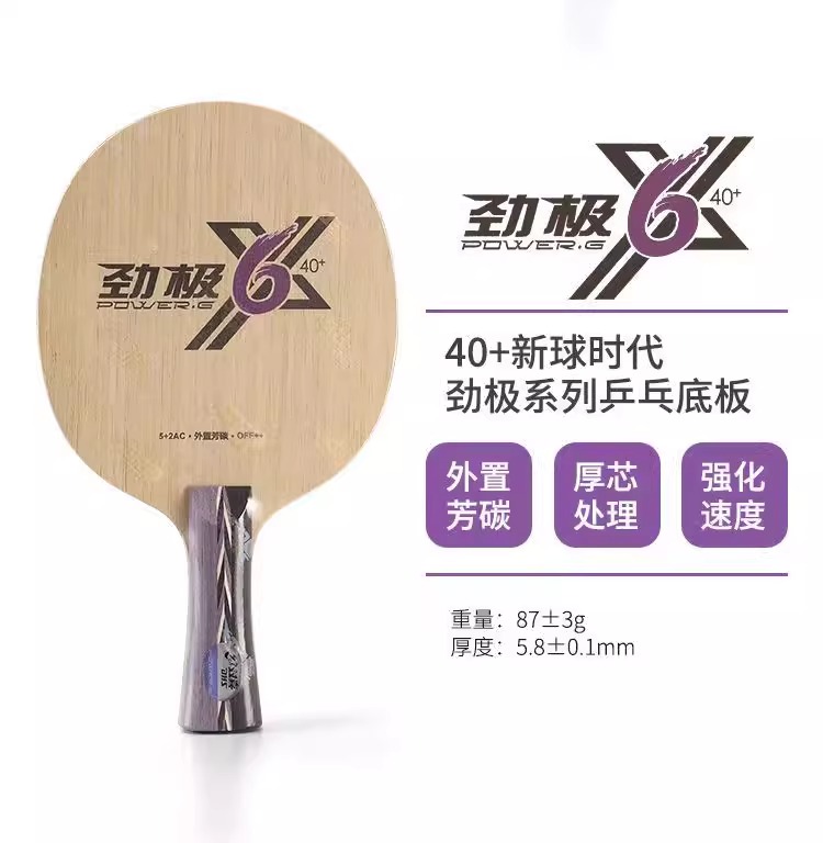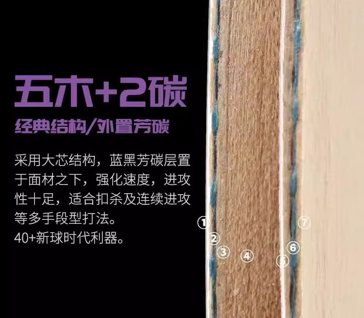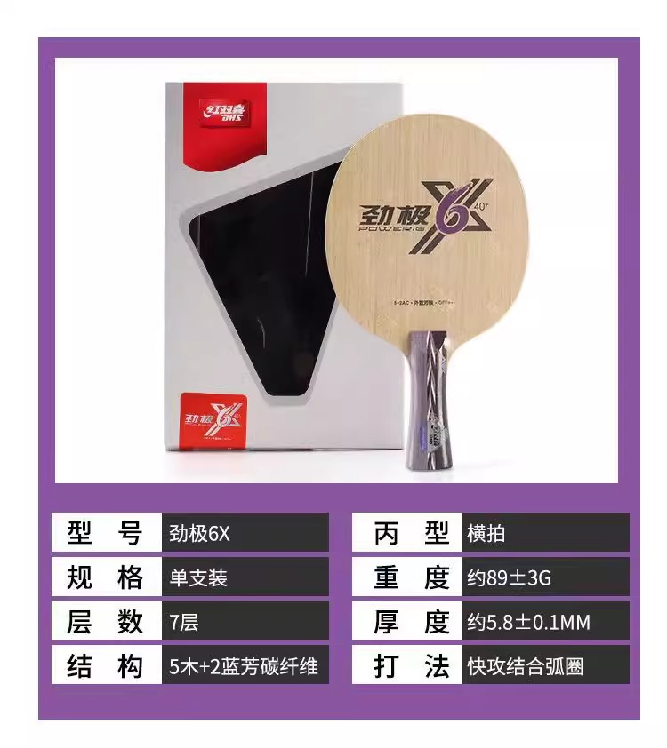 红双喜DHS 劲极6X乒乓球底板外置蓝芳碳7层乒乓球拍底板
