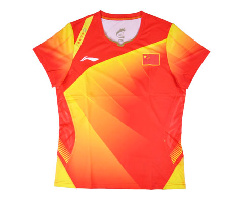 李宁AAYG246-1女款奥运会羽毛球服(伦敦奥运国羽战衣,赤鳞灵性之红色款):五星标志