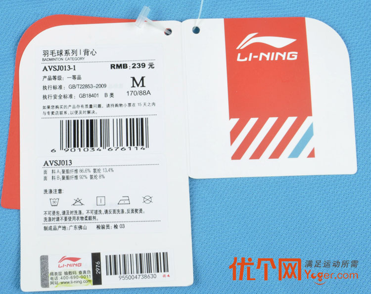 李宁AVSJ013-1运动背心(男士夏日必备,秀出您的Muscle Power)吊卡: