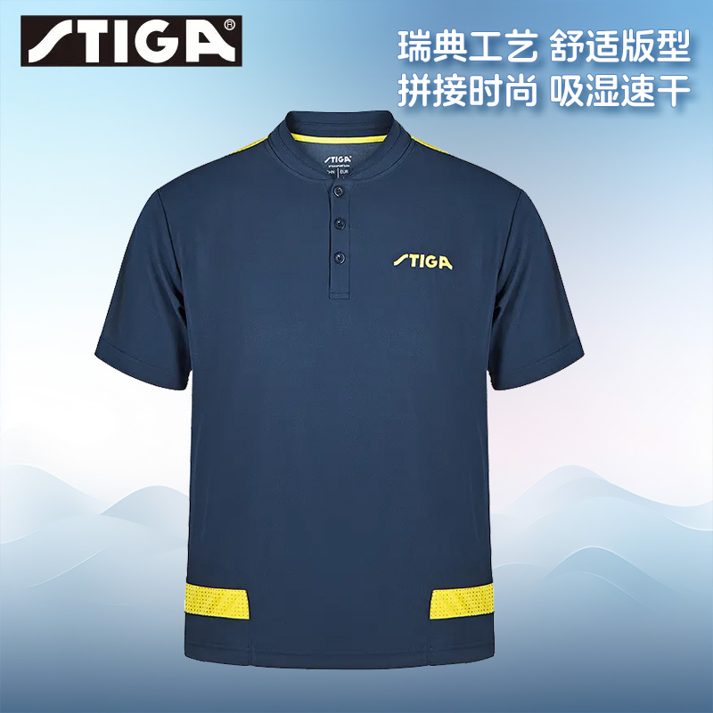 斯帝卡STIGA CA-6516 瑞典款拼接短袖 黄色 采用瑞典原版面料,拼接激光打洞网眼布,舒适透气