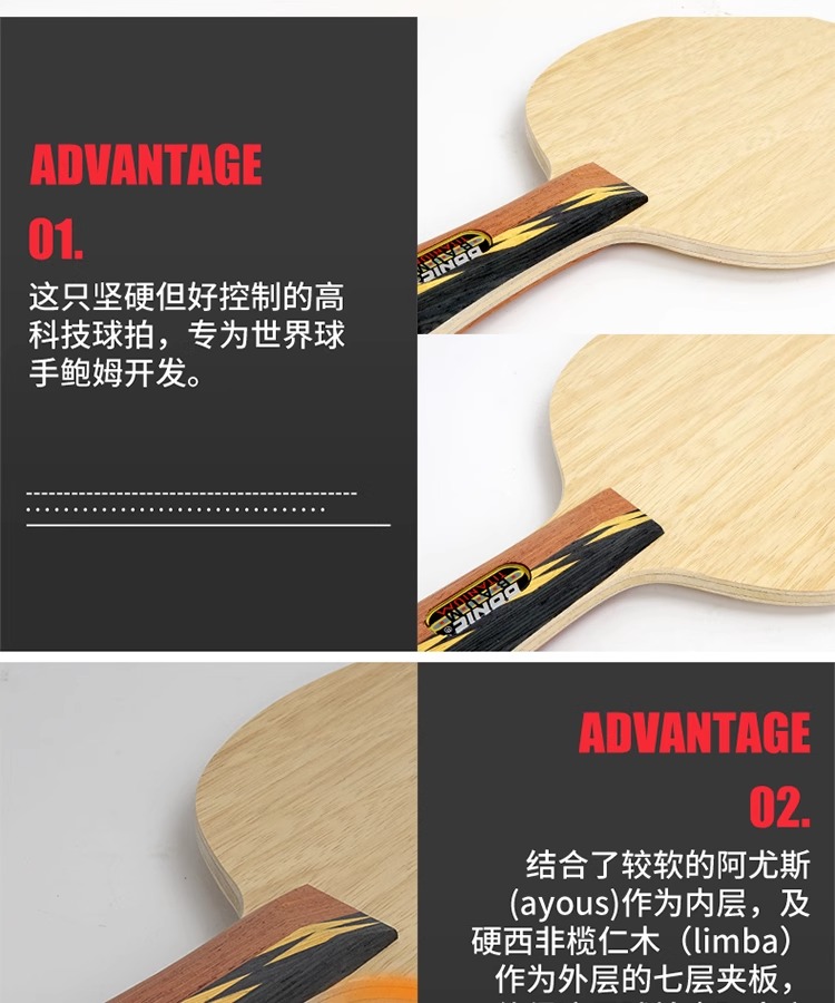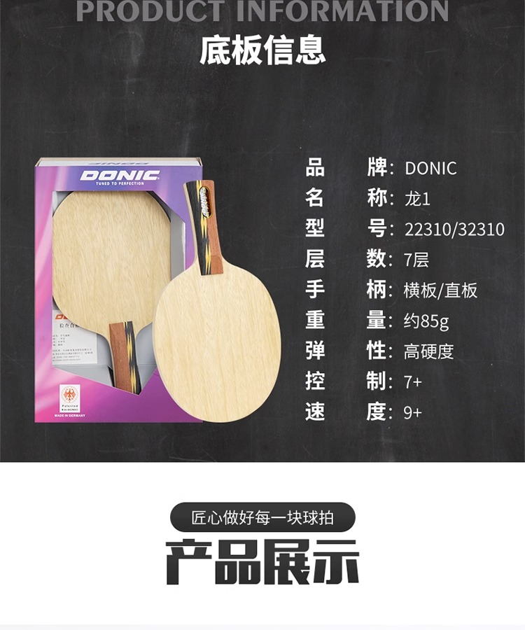 DONIC多尼克 乒乓球底板 龙1乒乓球拍 7层高硬度底板 22310/32310 直拍/横拍