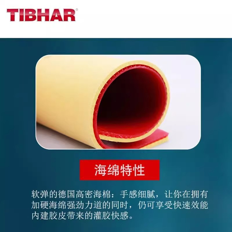 产品特点:TIBHAR公司根据国内某牛人的意见开发的新型套胶,更适合中国人的弧旋球动作。强大的海绵支撑力保证了小球控制时扎实的手感,没有了传统“德套”小球轻浮,乱跳的问题。