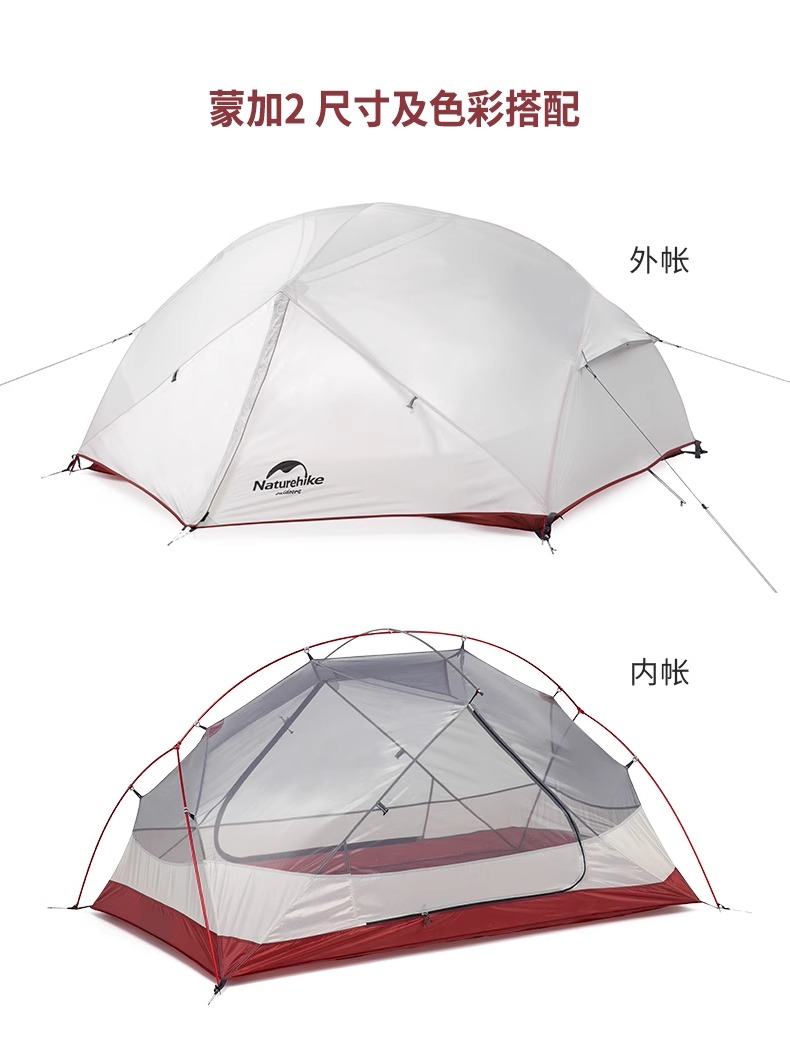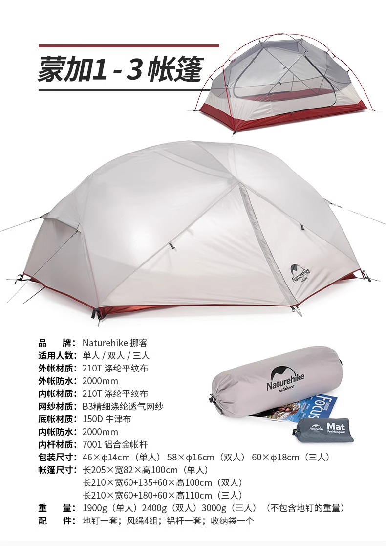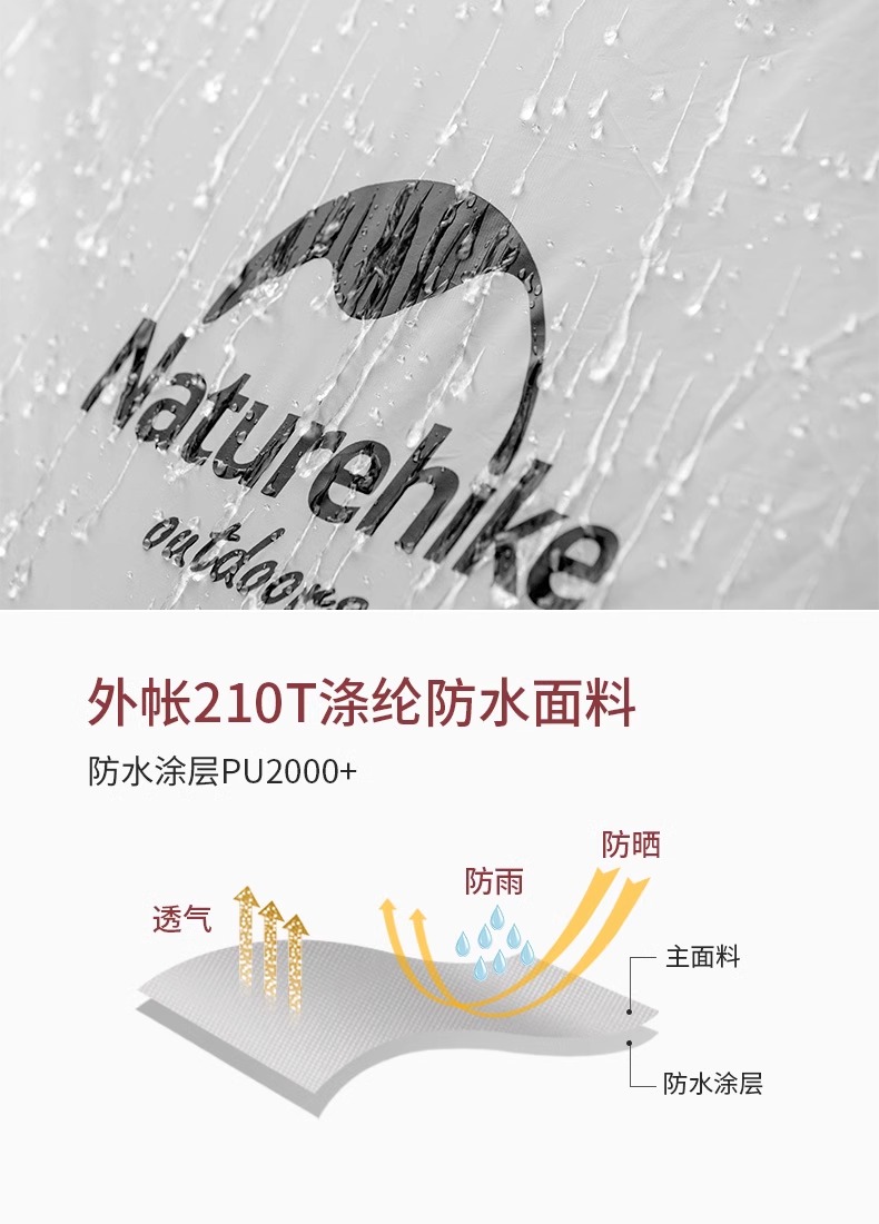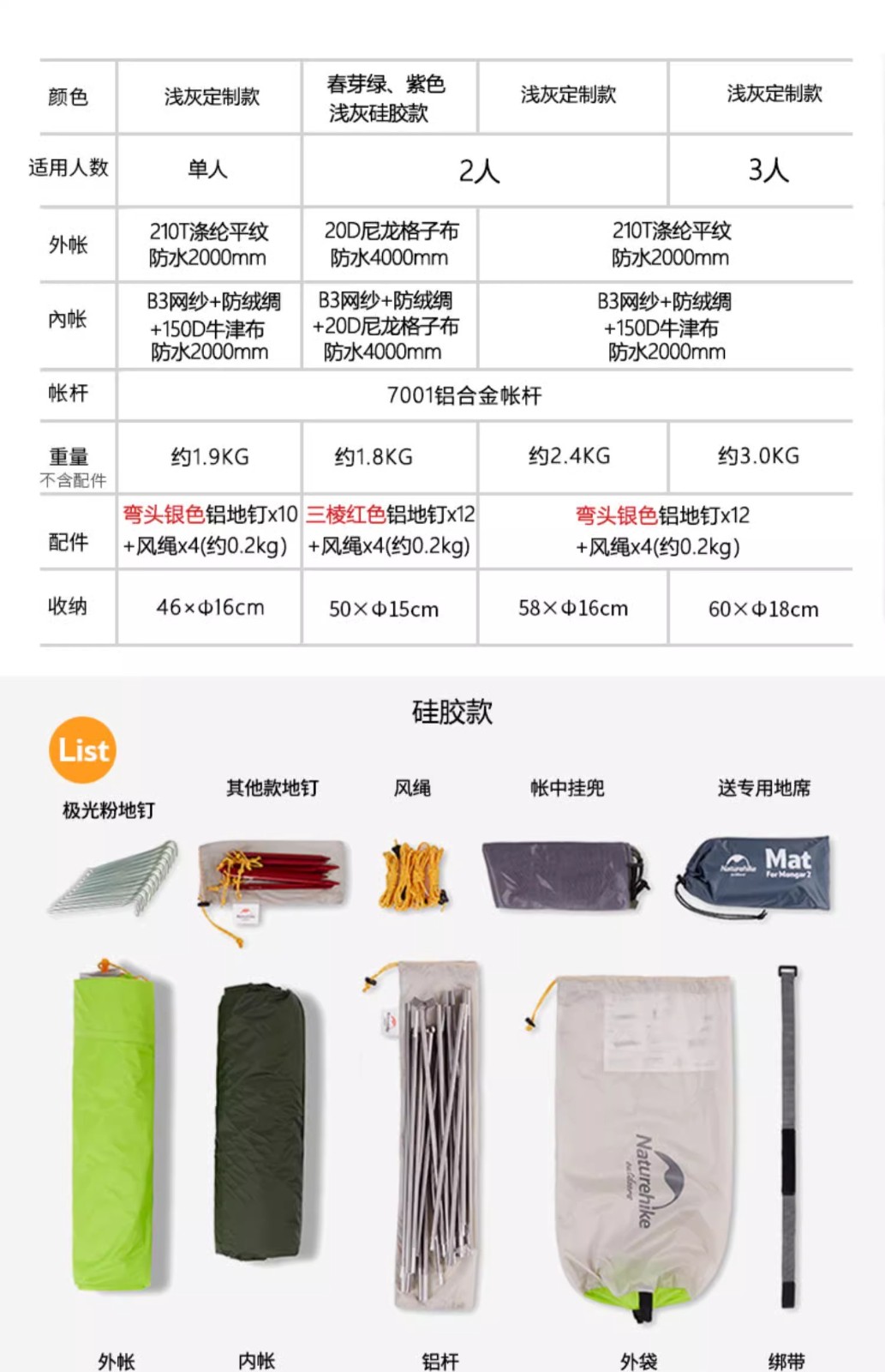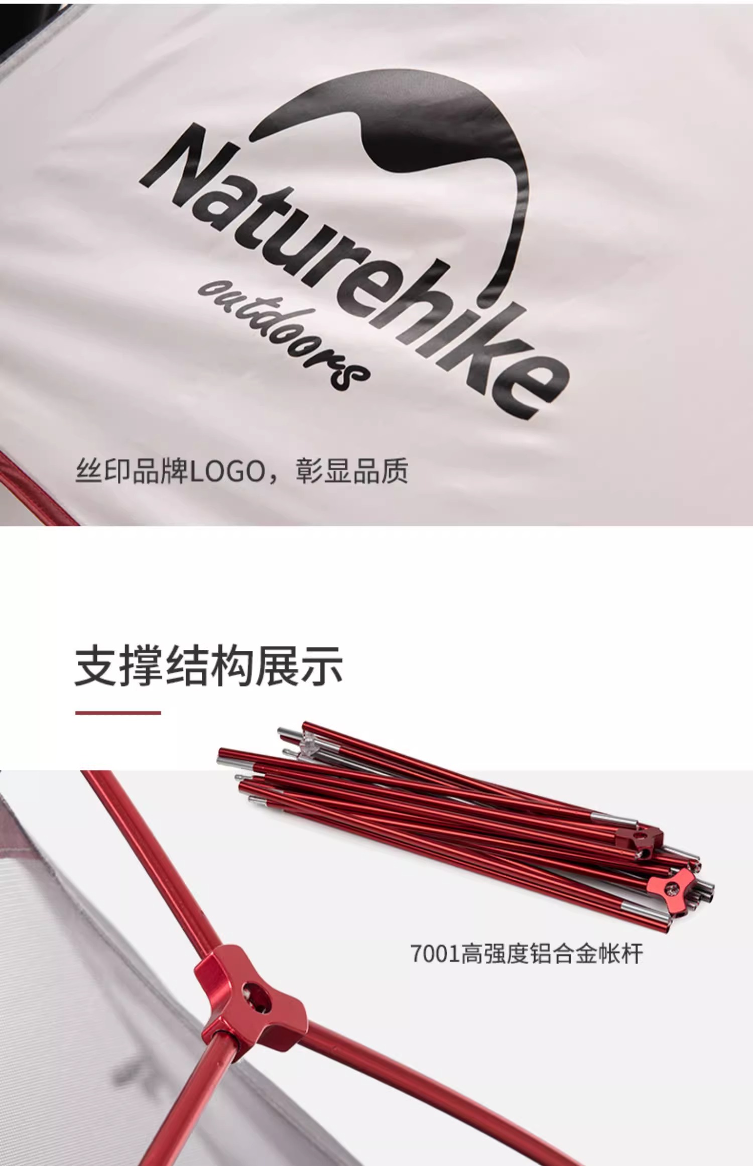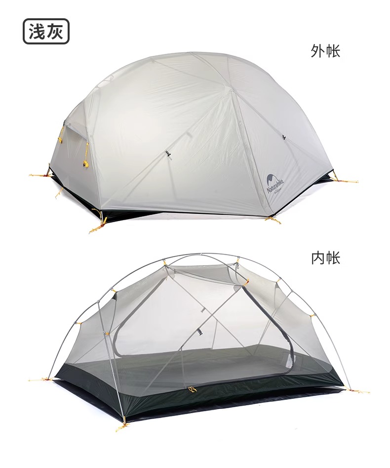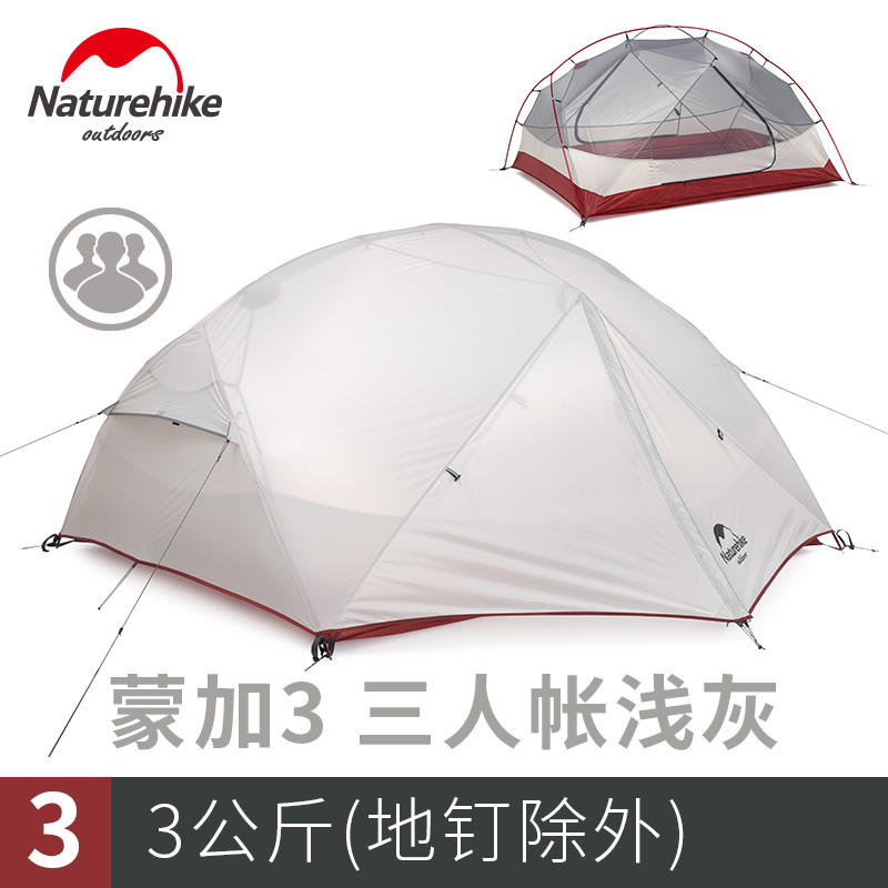 Naturehike挪客 便携户外露营 防雨双层 家庭登山露营野营帐篷 NH18M010-J 浅灰