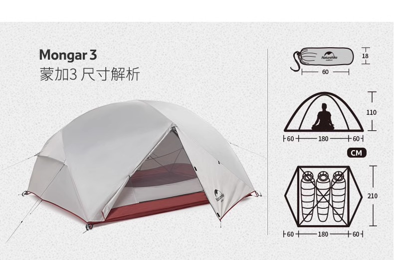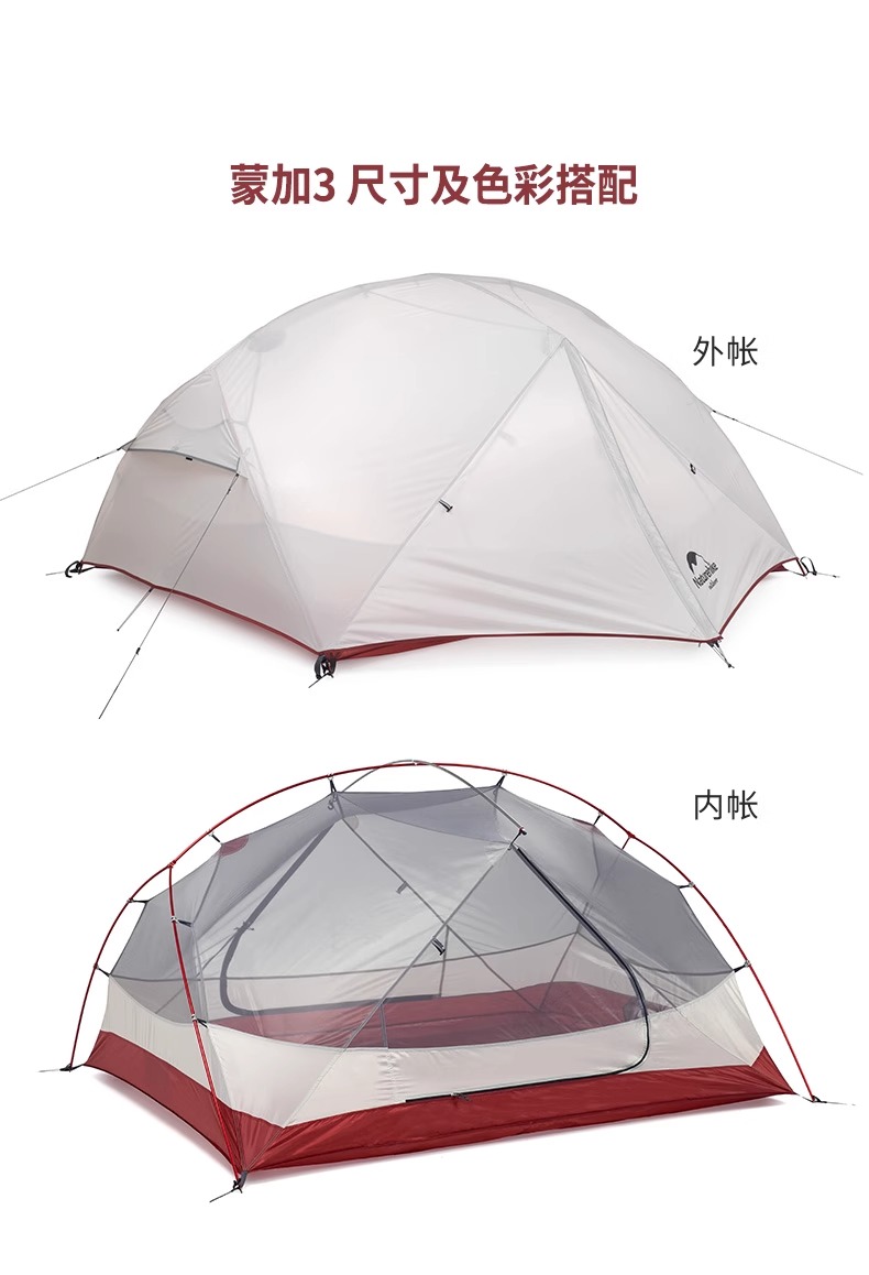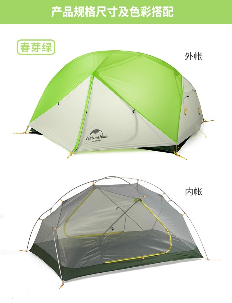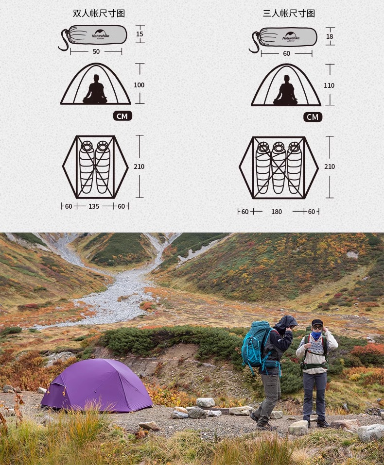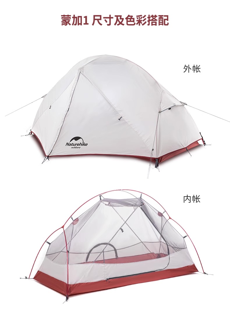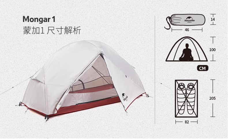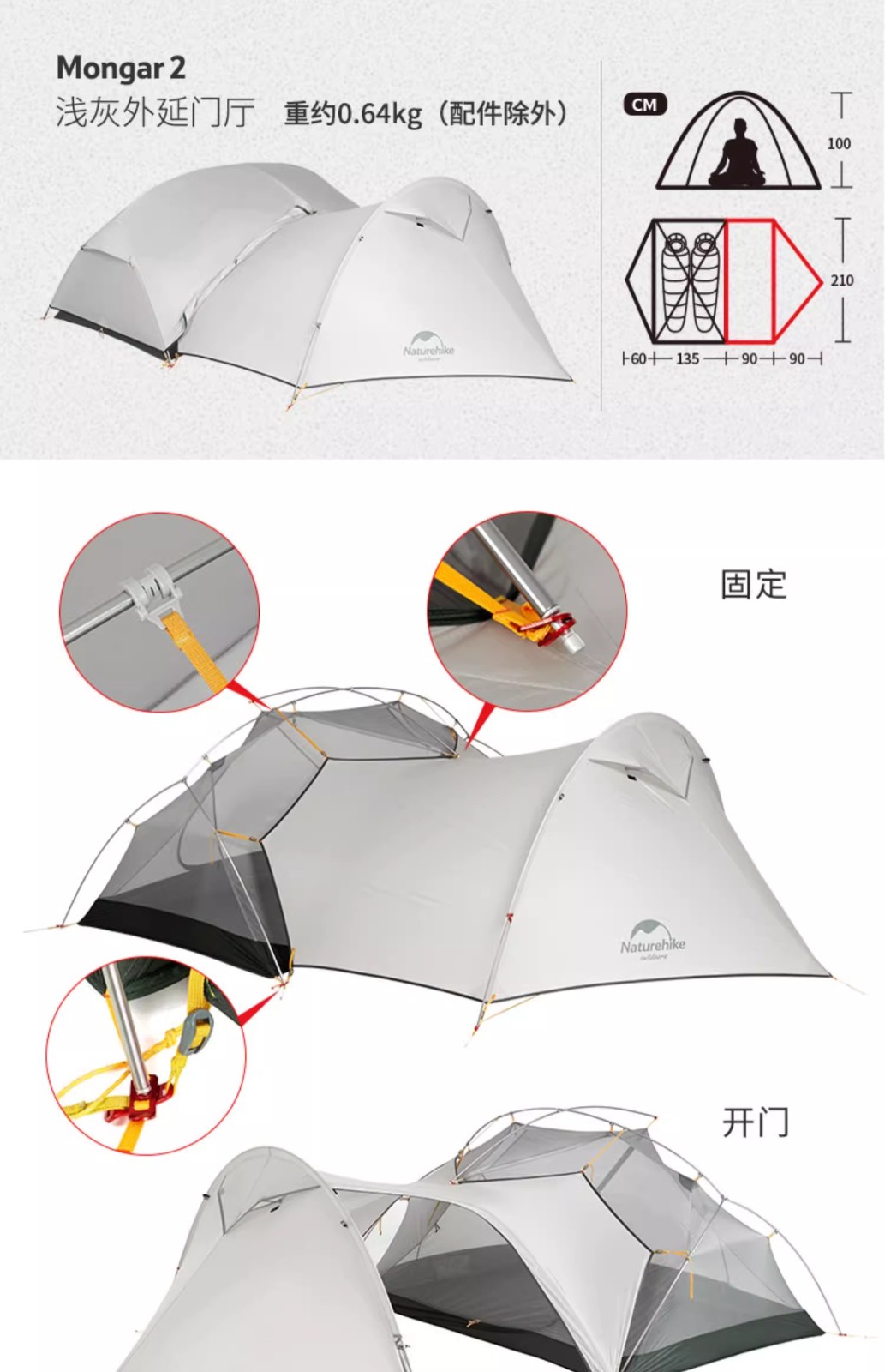 Naturehike挪客 便携户外露营 防雨双层 家庭登山露营野营帐篷 NH18M010-J 浅灰