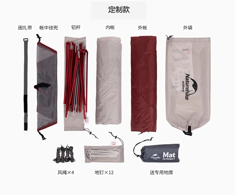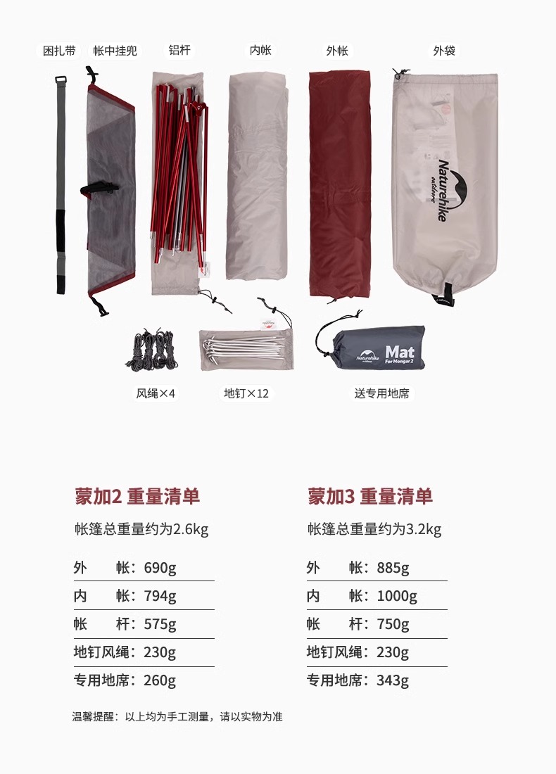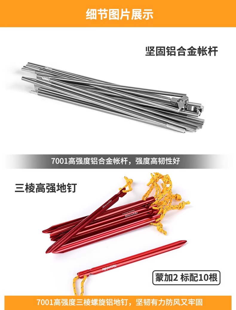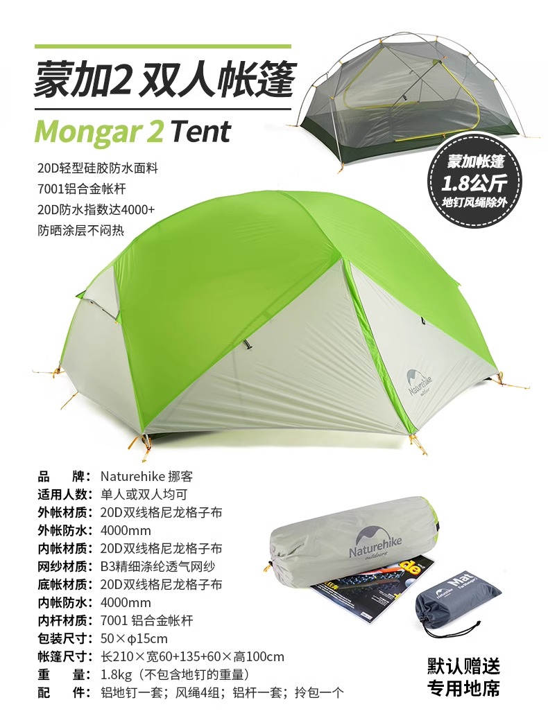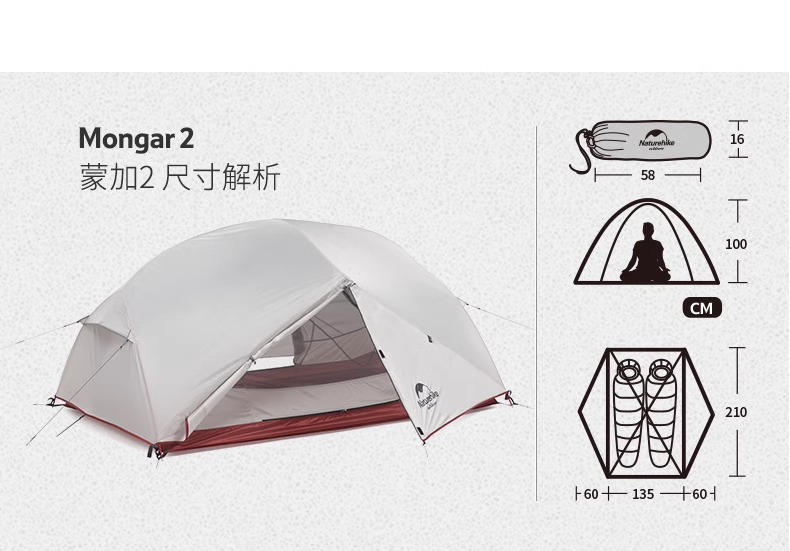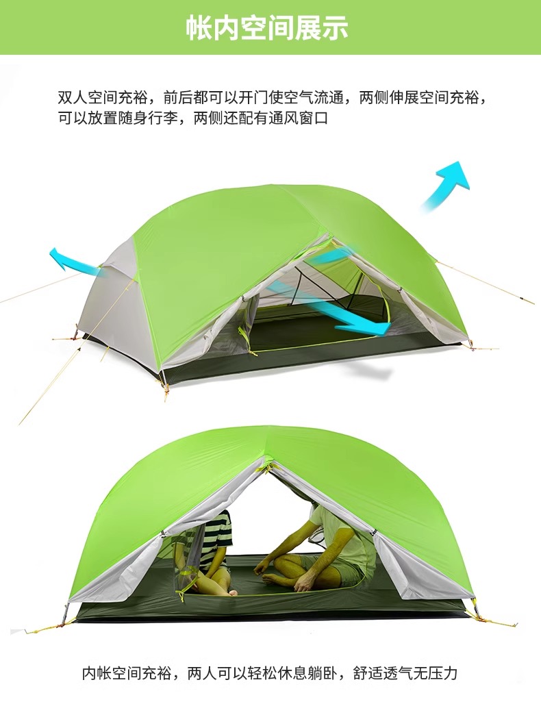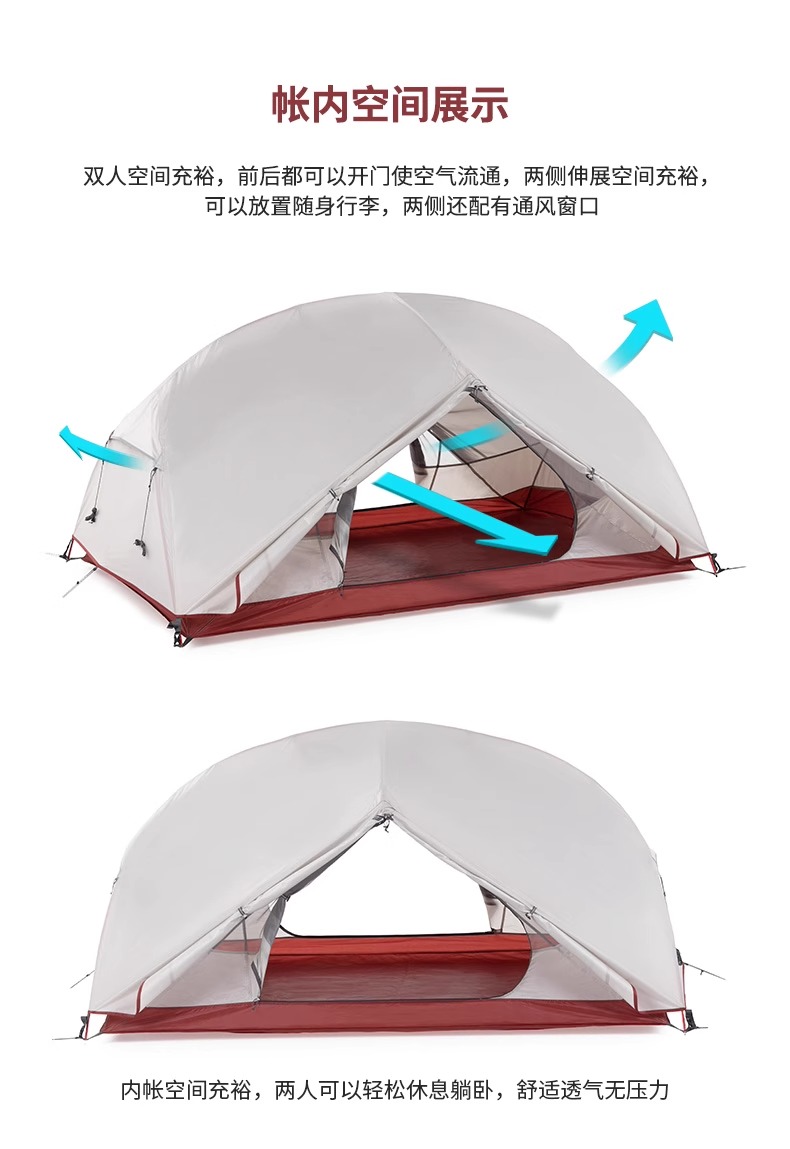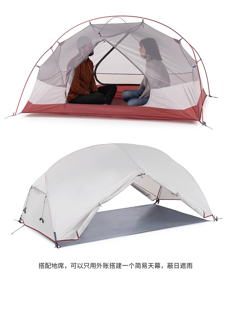Naturehike挪客 便携户外露营 防雨双层 家庭登山露营野营帐篷 NH18M010-J 浅灰