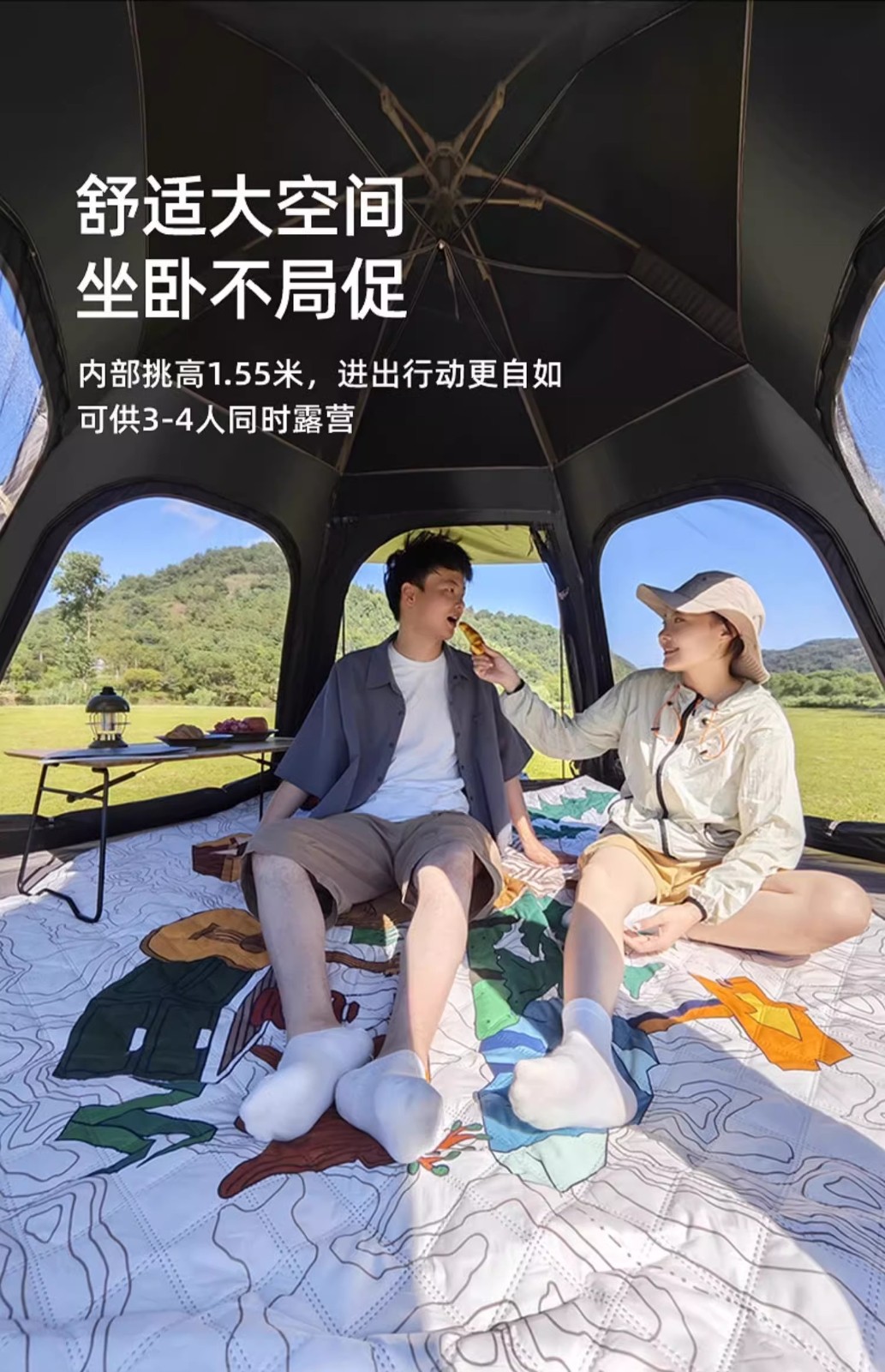 SunnyFeel山扉 户外露营帐篷 露营折叠便携式全自动野营过夜帐篷 清风·六角帐篷 SF-240107
