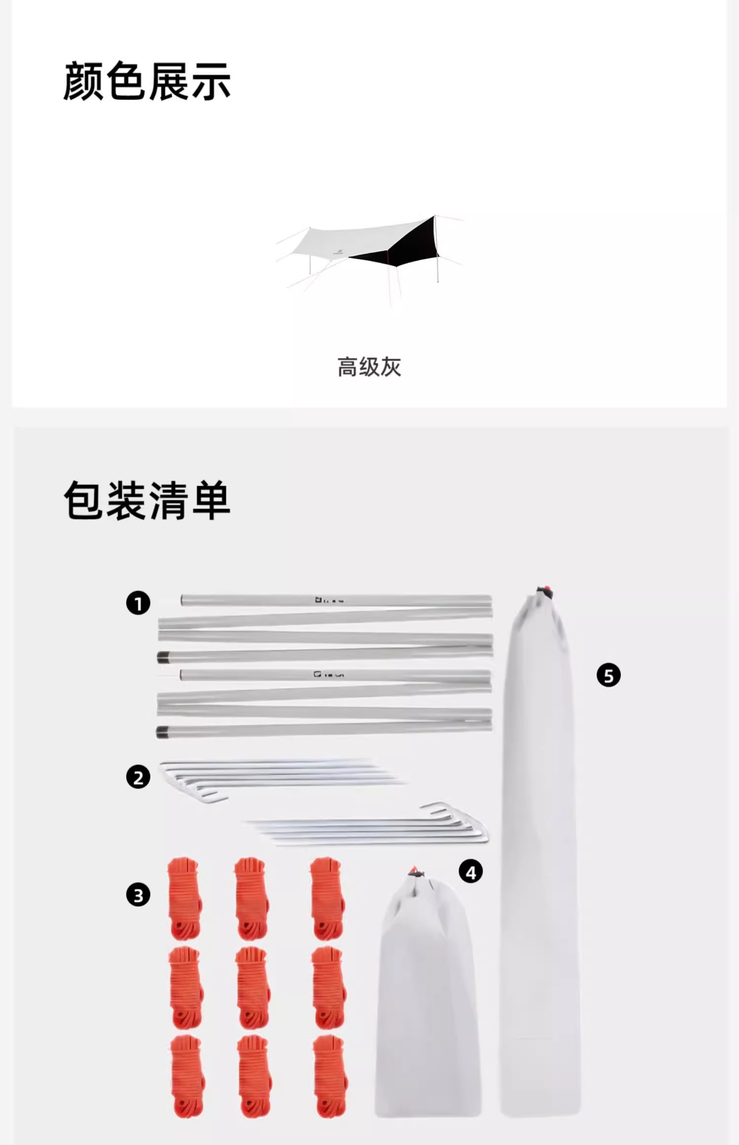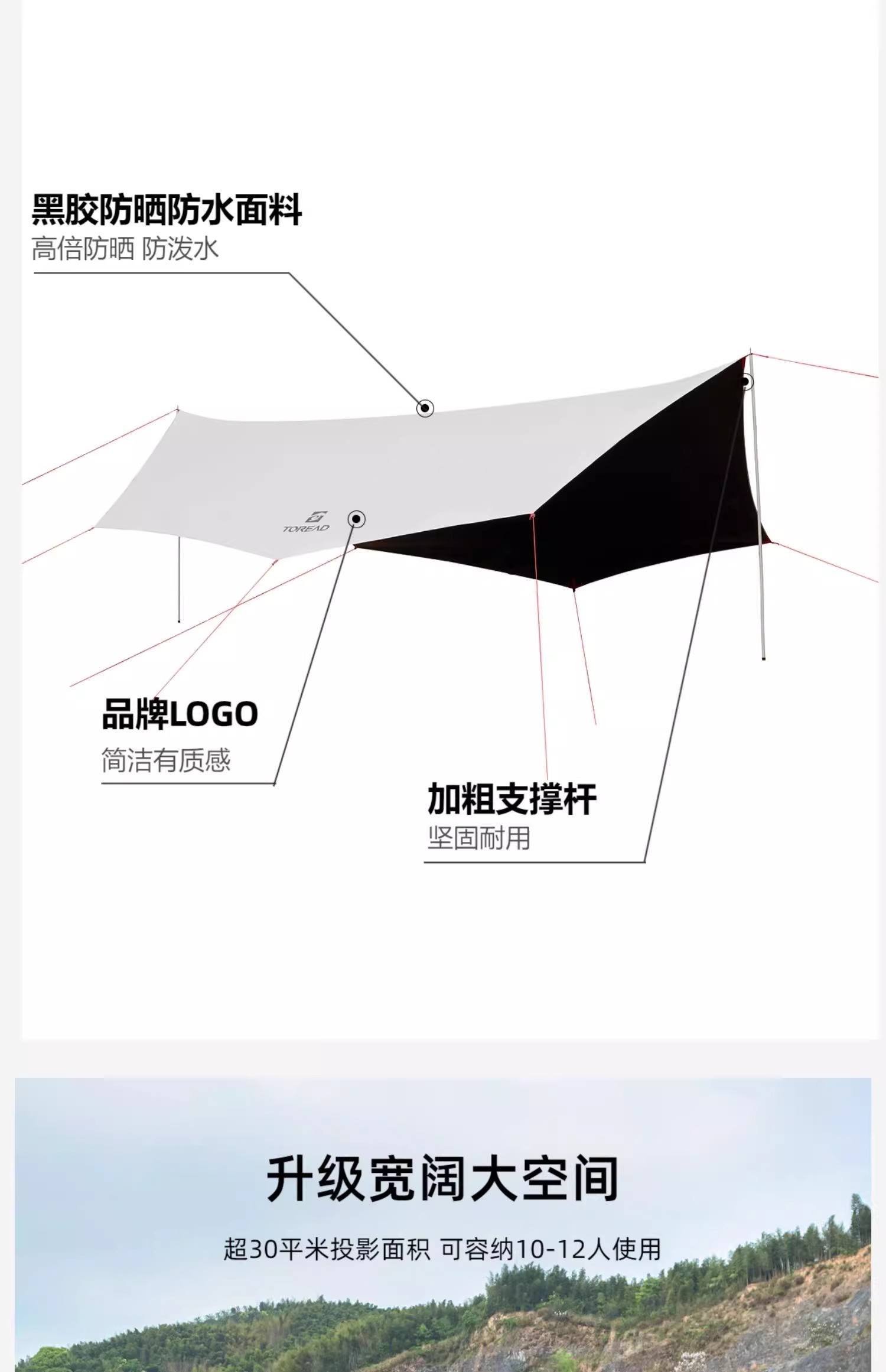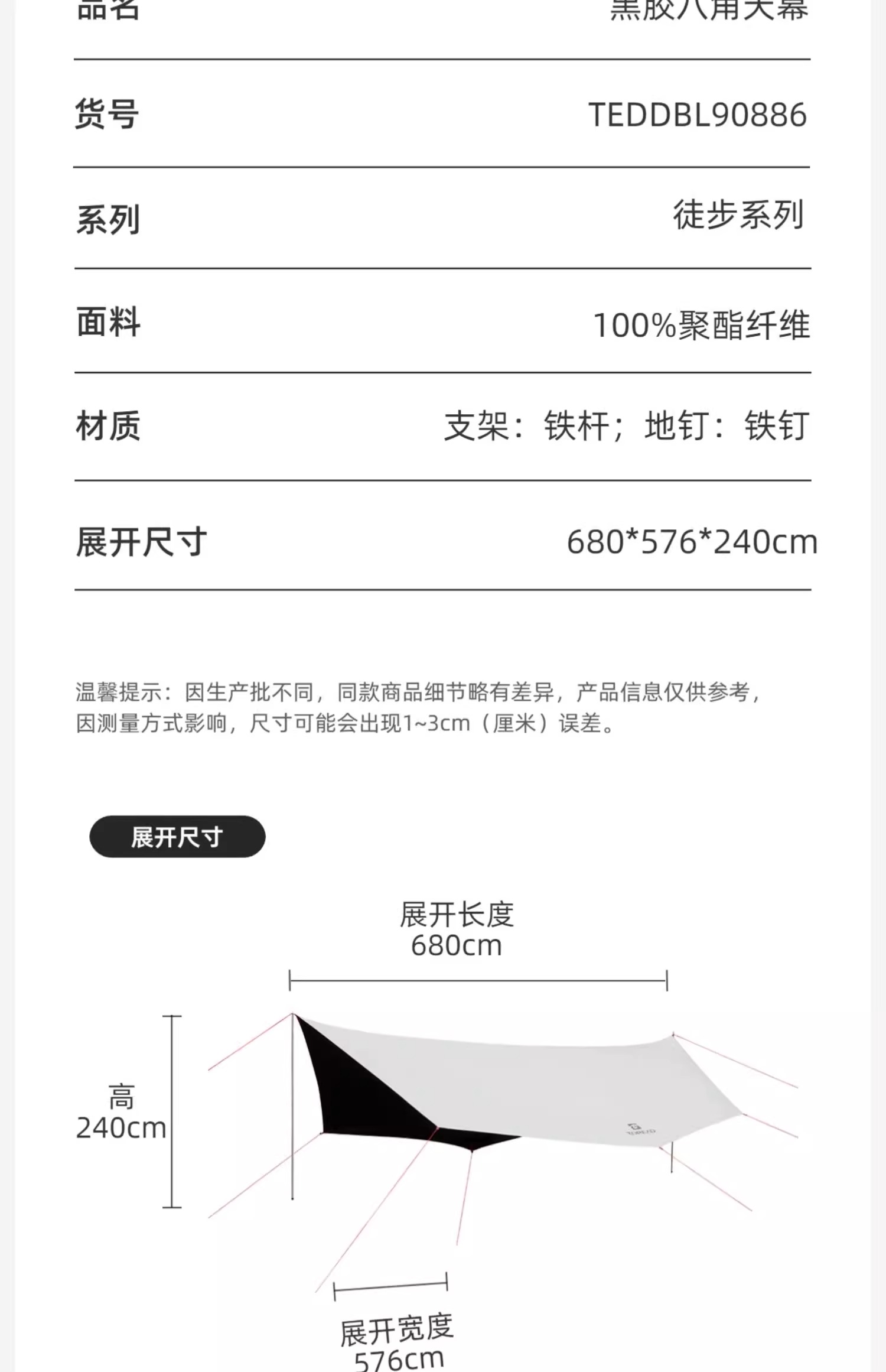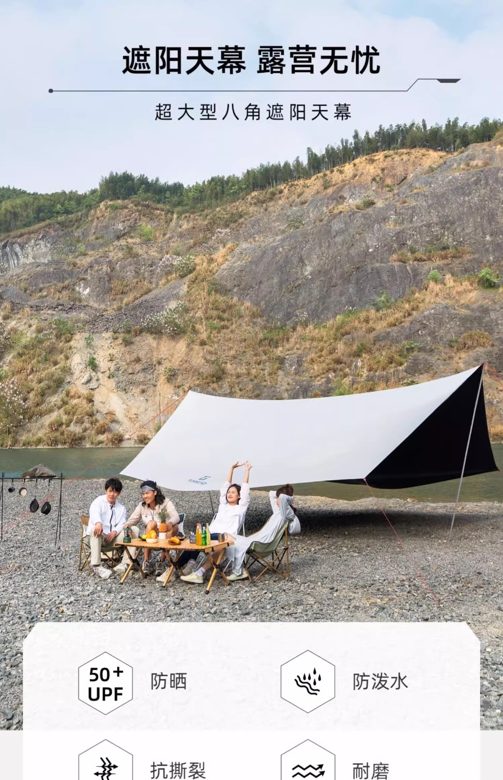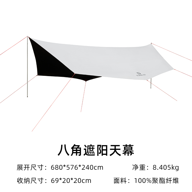 Toread探路者 黑胶天幕 户外露营野营防水遮阳防晒超大型八角幕布遮阳棚 高级灰 TEDDBL90886
