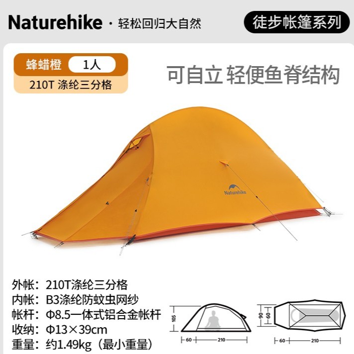 Naturehike挪客 户外帐篷 云尚base徒步轻量化帐篷户外单双人过夜帐篷 蜡蜂橙/1人 CNK2450WS032