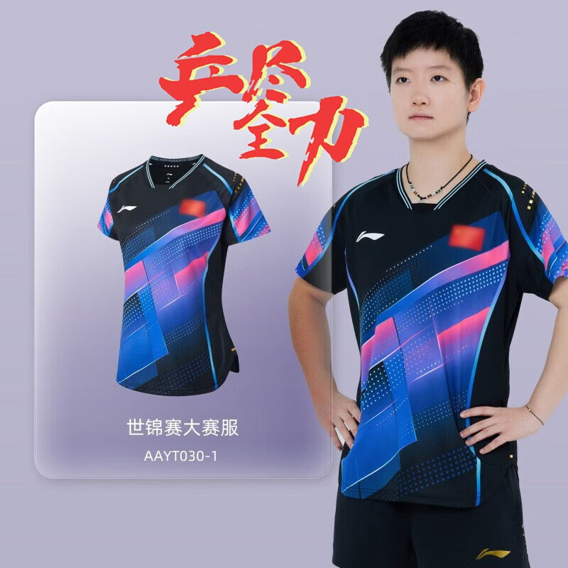 LI-NING李宁 乒乓球服 女款国家队同款 世锦赛大赛服 孙颖莎同款乒乓短袖 AAYT030-1 黑色 胸前国旗为烫贴, 随货发出,需要自行烫贴上去哦