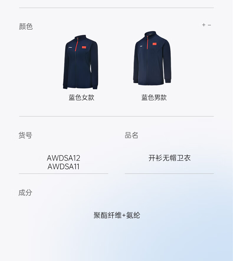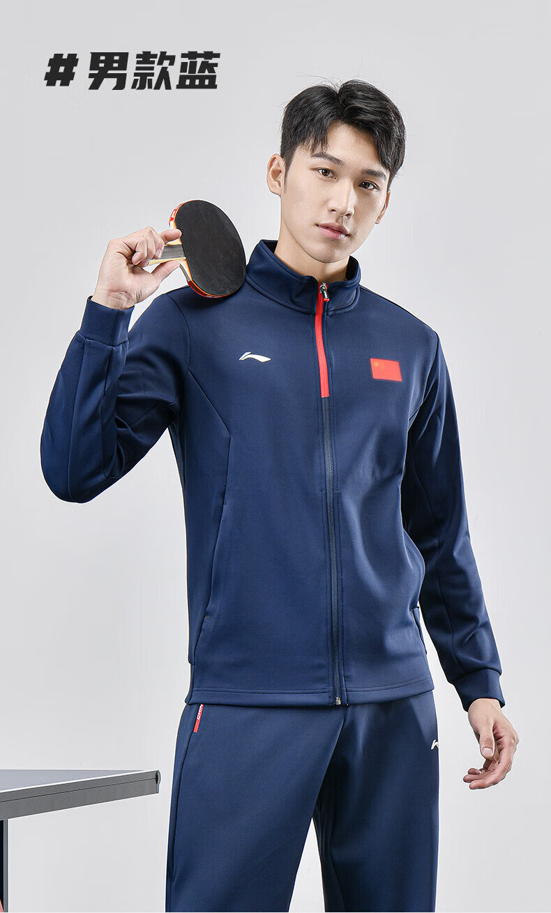 LI-NING李宁 乒乓球服 AWDSA11-男款墨水蓝 运动服外套 男女同款 训练比赛服 开衫卫衣