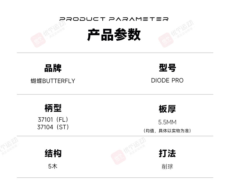 蝴蝶diode pro乒乓球拍