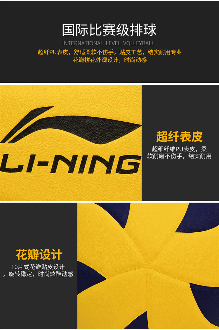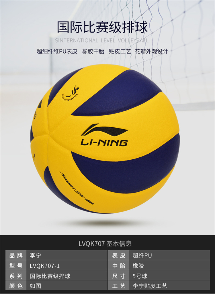 李宁LINING排球5号国际比赛级专业充气排球男女训练用球室内外通用 LVQK707-1 国际比赛级排球