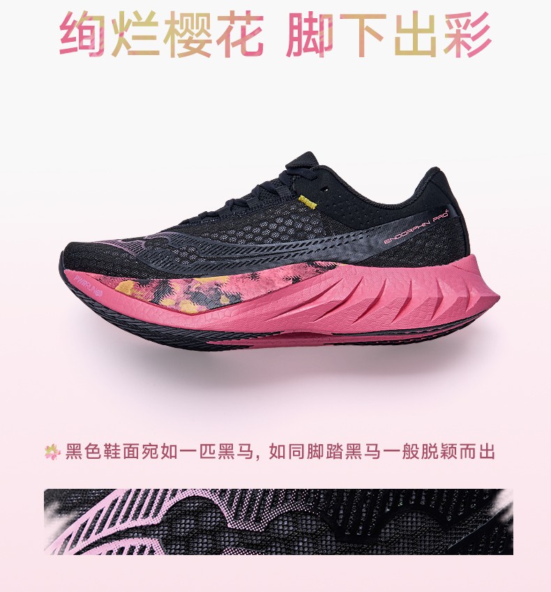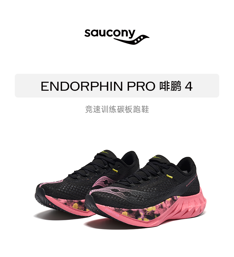 Saucony索康尼 啡鹏4竞速跑鞋 Endorphin Pro 4马拉松竞速碳板训练跑鞋 男女款缓震跑步运动鞋 S30939-800 黑粉红