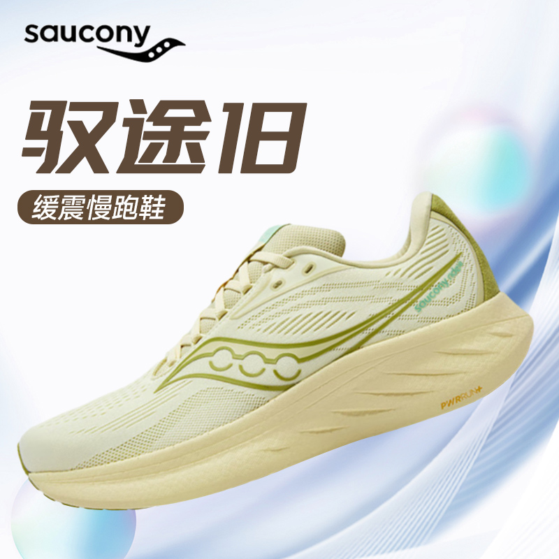 Saucony索康尼 驭途18缓震跑步鞋 RIDE 18情侣款防滑减震运动户外跑步休闲鞋 S31000-551 黄绿色