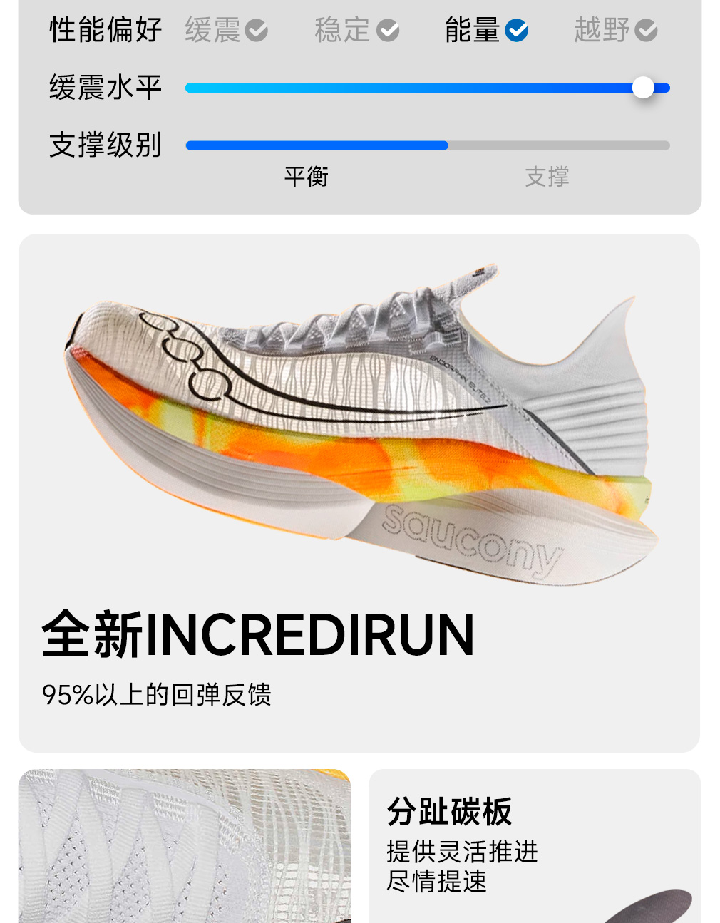 索康尼啡翼2以IncrediRun 超临界发泡中底重塑竞速脚感